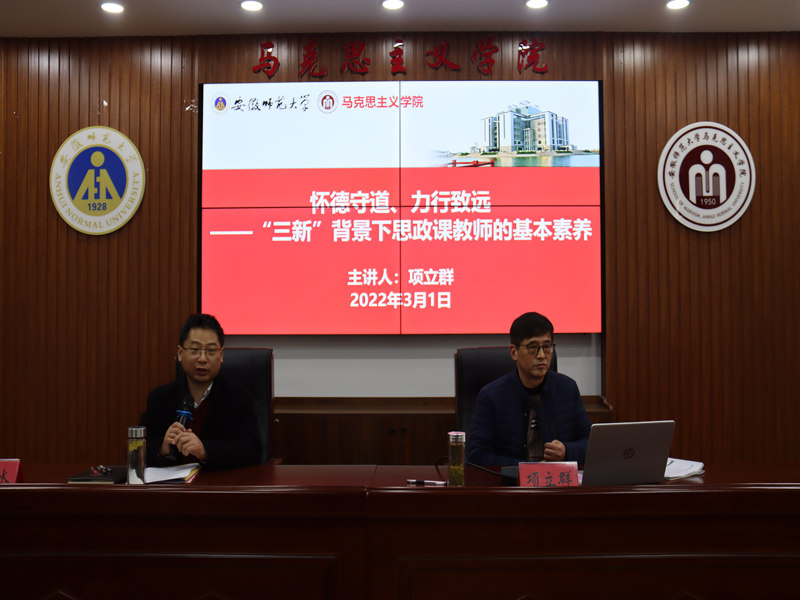 此次辅导报告以《怀德守道,力行致远——“三新”背景下思政课教师的基本素养》为主题,内容共分为六个部分。首先,项立群以新时代的“好老师”的标准介绍了教师的定位,同时说明了“好老师”对个人、公司和民族的重要性,他通过阐释习近平总书记在公司思想政治理论课教师座谈会上提出的“六要”,要求同学们朝着新时代思政课教师的方向努力。随后,他又谈到了现代教师的十条基本素养,尤其强调了健康的身体、一专多能的知识结构和学以致用的工作能力的重要性,并从外因和内因两个方面指出了影响教师成长的因素。最后,项立群围绕自己的教学经历,和同学们分享了十条教学经验,指出了教师需要经常思考的四个问题,同时表达了对同学们珍惜时光、不负韶华,在未来成长为优秀思政课教师的期望。
