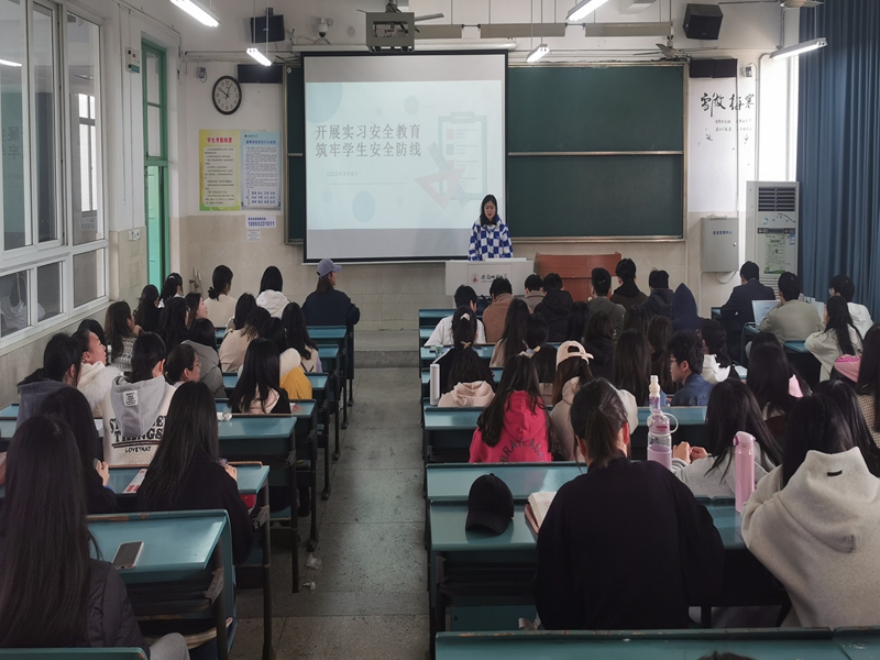 在周楠对本次会议作简单介绍后,吴京以“开展实习安全教育,筑牢员工安全防线”为主题给同学们普及安全知识。会议围绕交通安全、饮食安全、人身安全、消防安全、财产安全、法治意识、用电安全、遵守规定八个方面进行阐述,吴京提醒同学们注意往返实习公司的交通安全,不吃无证经营的摊贩食品。离校时保管好自己的贵重物品,尤其是实习期间注意防盗防骗,增加自我防范意识,同时要遵守实习单位的规章制度,服从实习单位的指挥,而且要定时与公司、特别是与辅导员和指导老师加强联系。