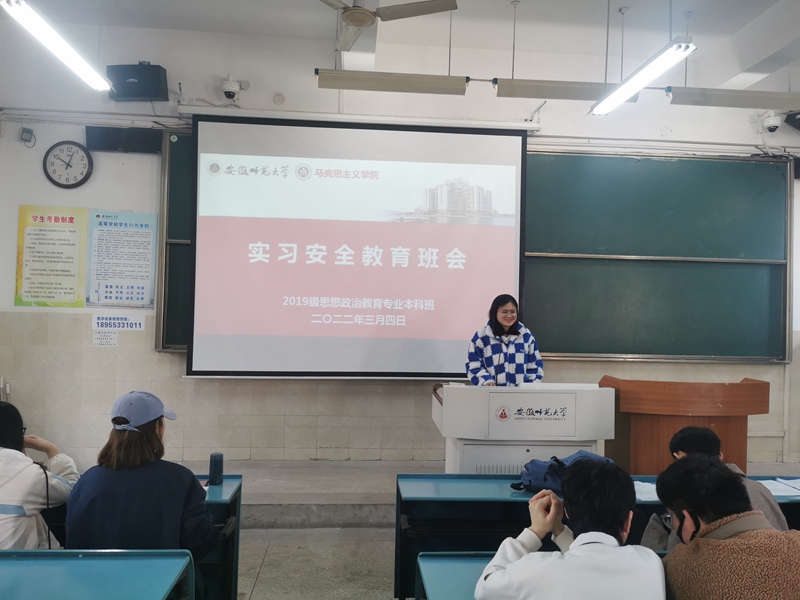 本网讯(文/摄 刘安瑶)为帮助同学们牢固树立安全意识,确保实习活动顺利开展,3月4日上午10时,2019级思想政治教育专业于行知楼2010203召开实习安全教育班会,本次会议由辅导员周楠主持,2019级全体本科生参加。