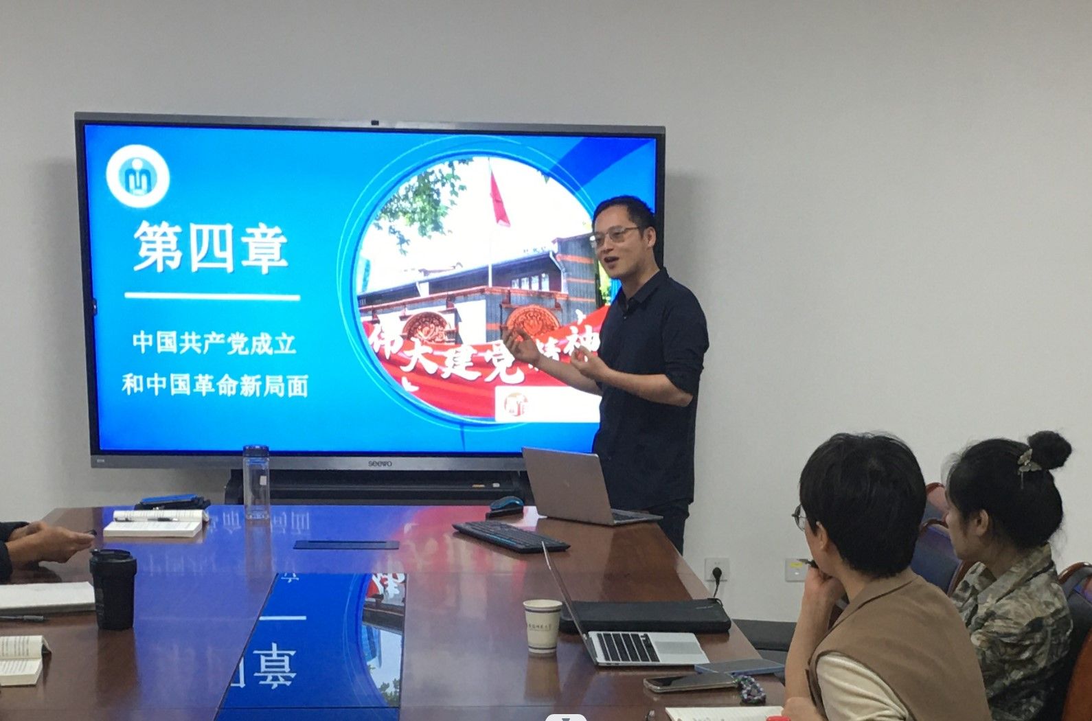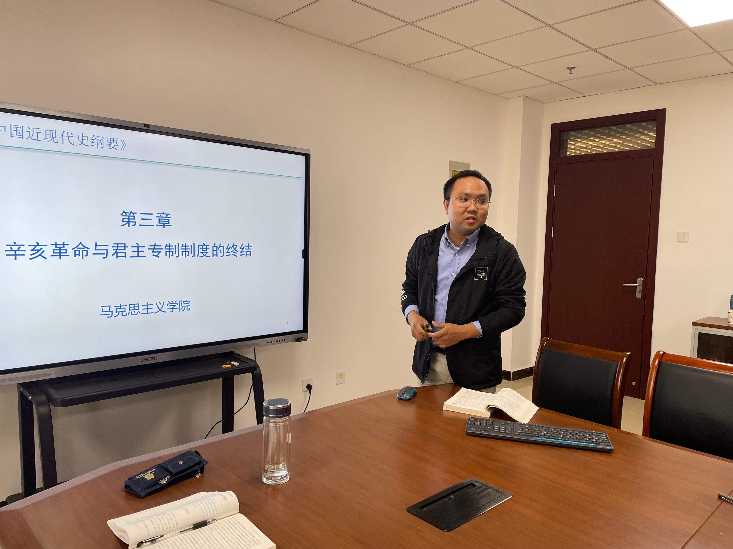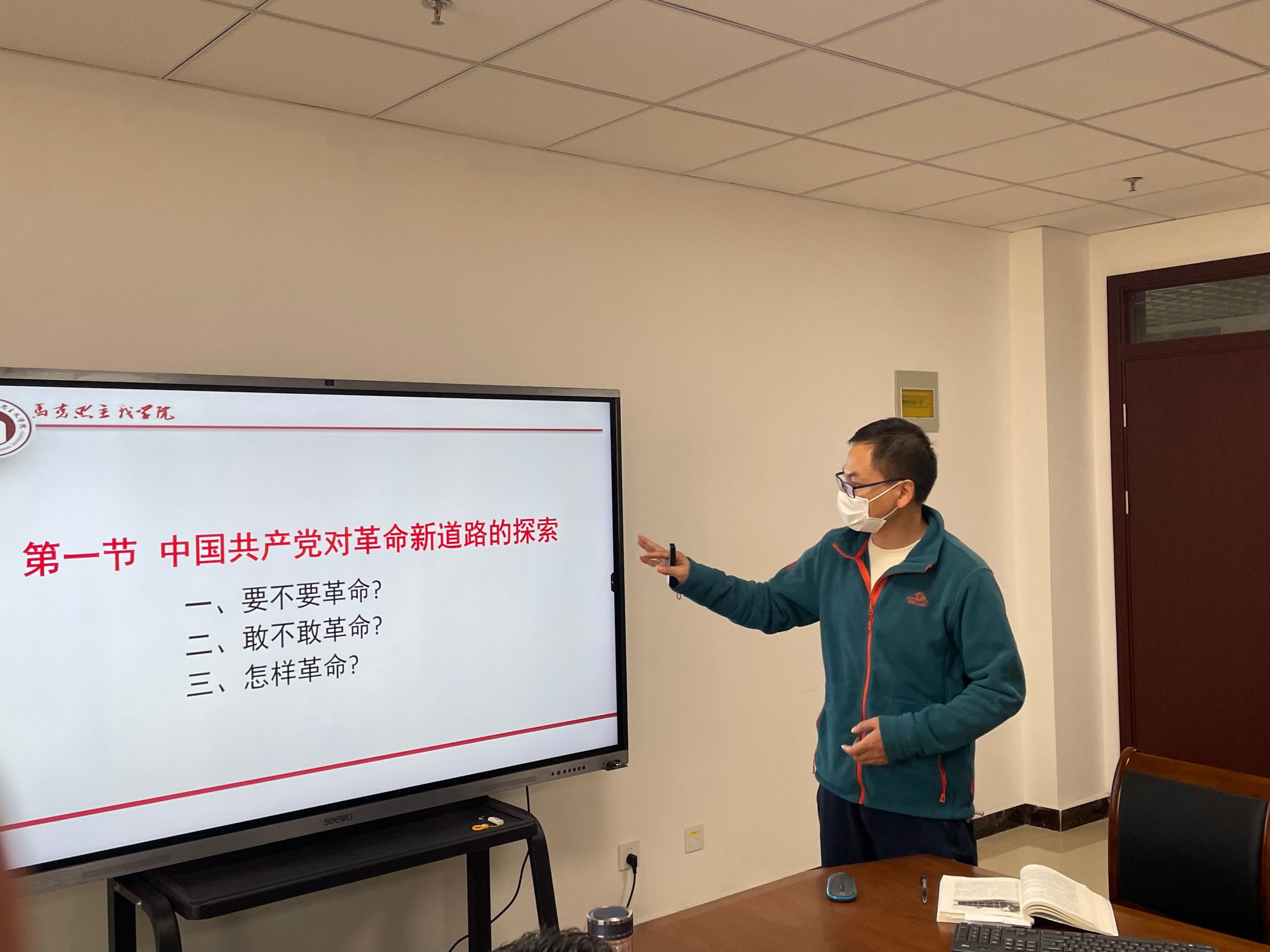 备课会上,魏正山、徐晓光、曹明臣老师分别就《中国近现代史纲要》课程的第三章“辛亥革命与君主专制制度的终结”、第四章“中国共产党成立和中国革命新局面”及第五章“中国革命新道路”的教学内容做了教学展示和经验分享。三位老师准备充分,讲解清晰。与会教师们集思广益,围绕各章节教学重难点剖析、教学环节设计、教学素材使用等进行了热烈研讨,并充分交流了各自教学中的经验和体会。