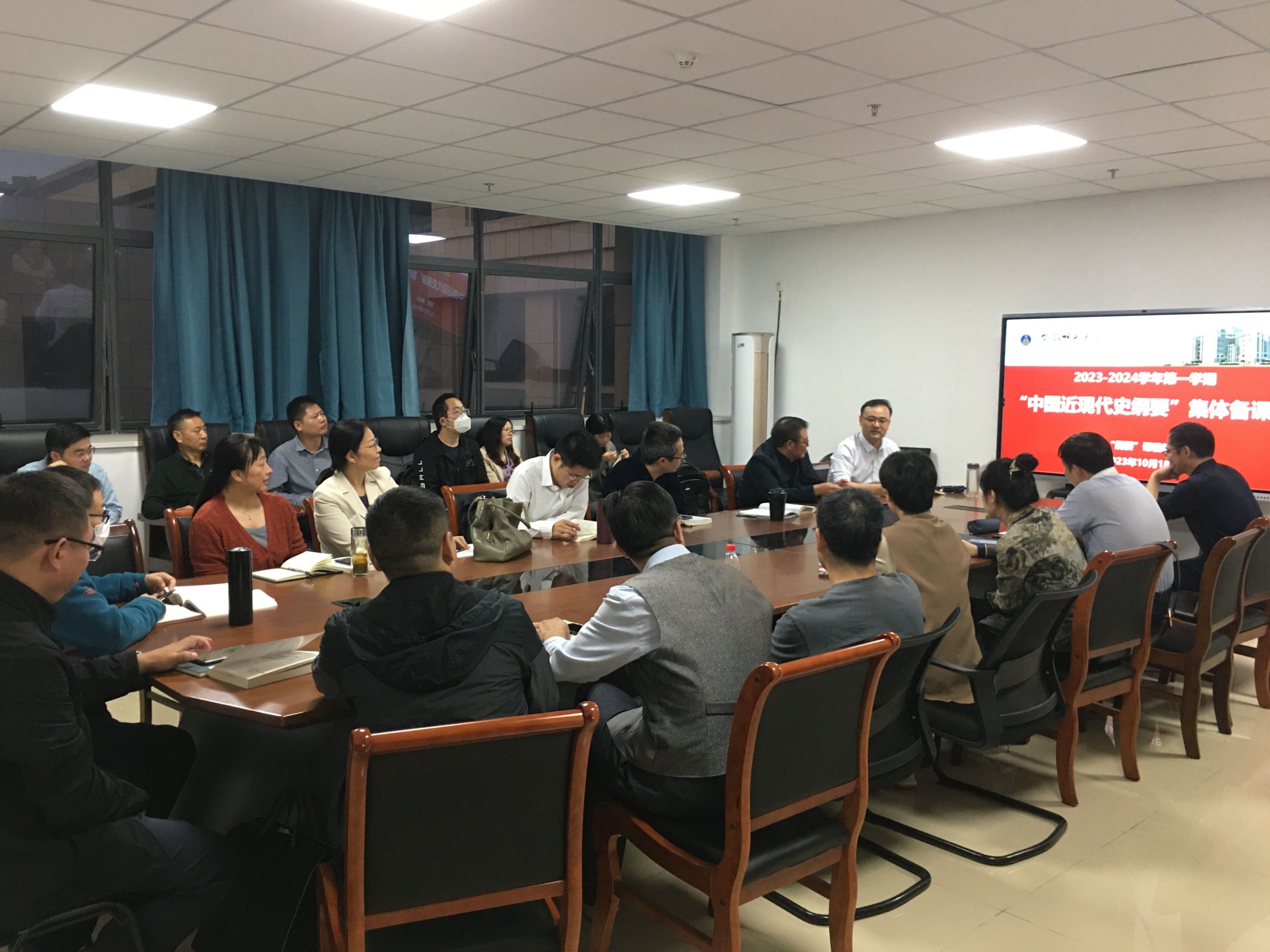 [本网讯 文/图 魏正山] 2023年10月18日下午,“中国近现代史纲要”课程组在文典楼G411公司会议室召开2023-2024学年第一学期第二次集体备课会。课程组全体教师参加了备课会,备课会由课程组负责人郭理副教授主持。