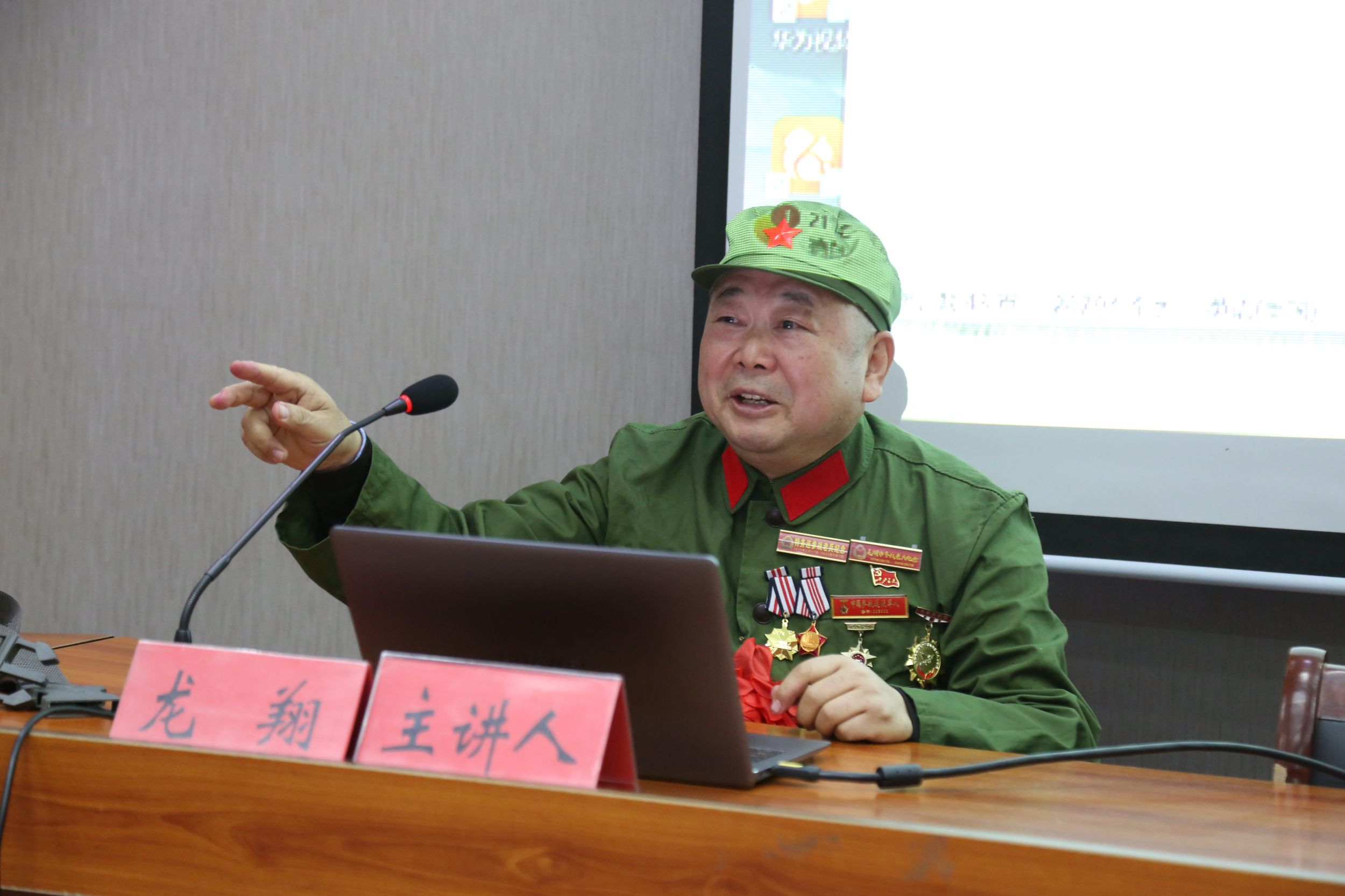 为推动新时代爱国主义入心见行,达致沟通心灵、启智润心和激扬斗志的育人成效,在公司大力支持下,《思想道德与法治》课多年来致力于爱国主义专题教学路径的持续探索,除已开展的爱国主义影视观摩、雨花台烈士陵园和侵华日军南京大屠杀遇难同胞纪念馆参观等实践课品牌外,此次又推出卫国英模进课堂活动。11月20下午,一身军装的湘籍越战老兵龙翔同志来到beet365官方网站天门山校区,为老员工讲授了一堂精彩的爱国主义教育大课。