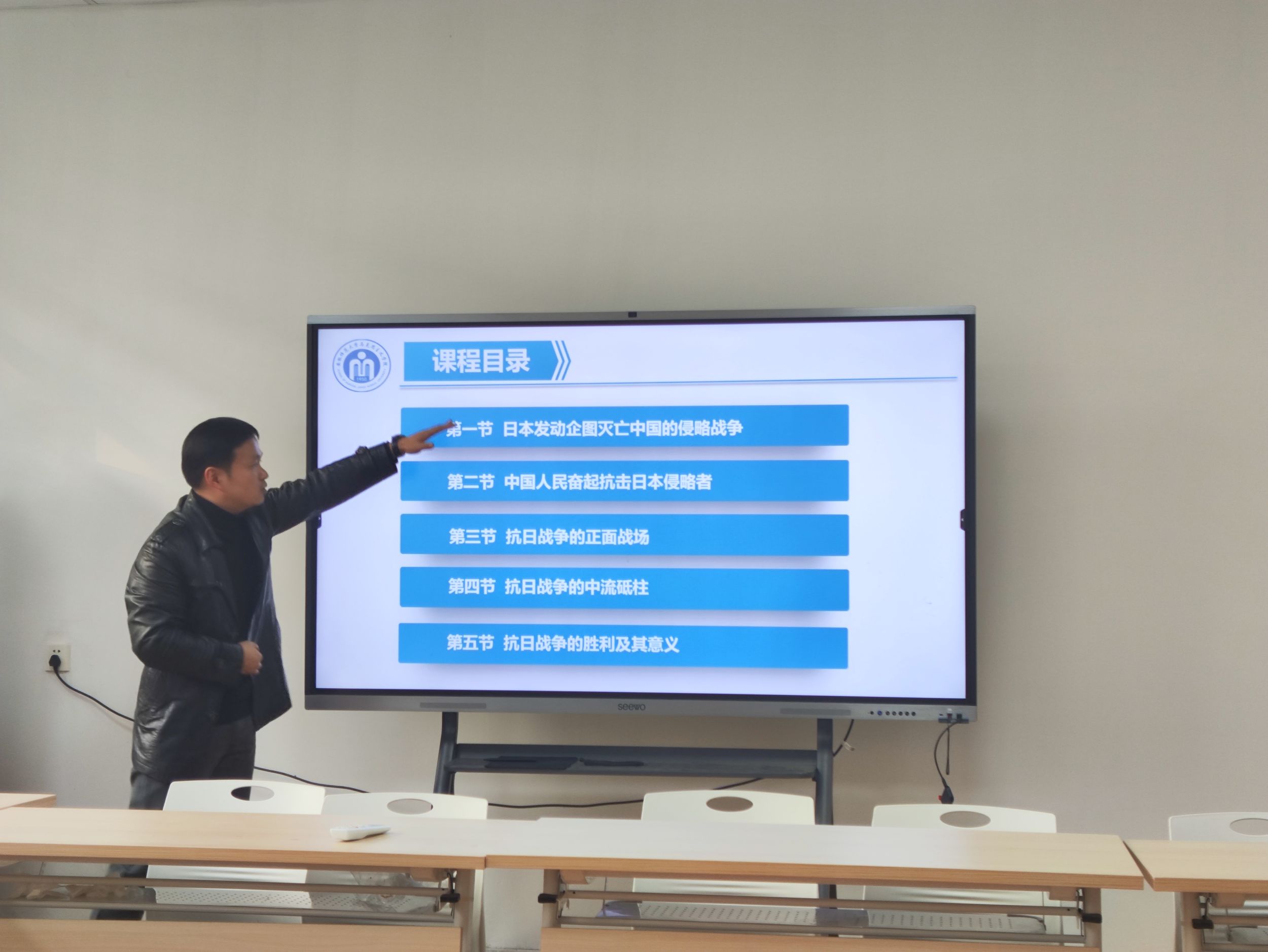 随后,张鑫老师围绕第六章《中华民族的抗日战争》,通过对教学目标、教学重难点、教学思路等问题进行阐述,分析了国共合作、抗日民族统一战线和全民族抗战形成的过程,深刻阐释了中国共产党在抗日战争中的中流砥柱作用和抗日战争在世界反法西斯战争中的重要地位,史料翔实,论证充分。