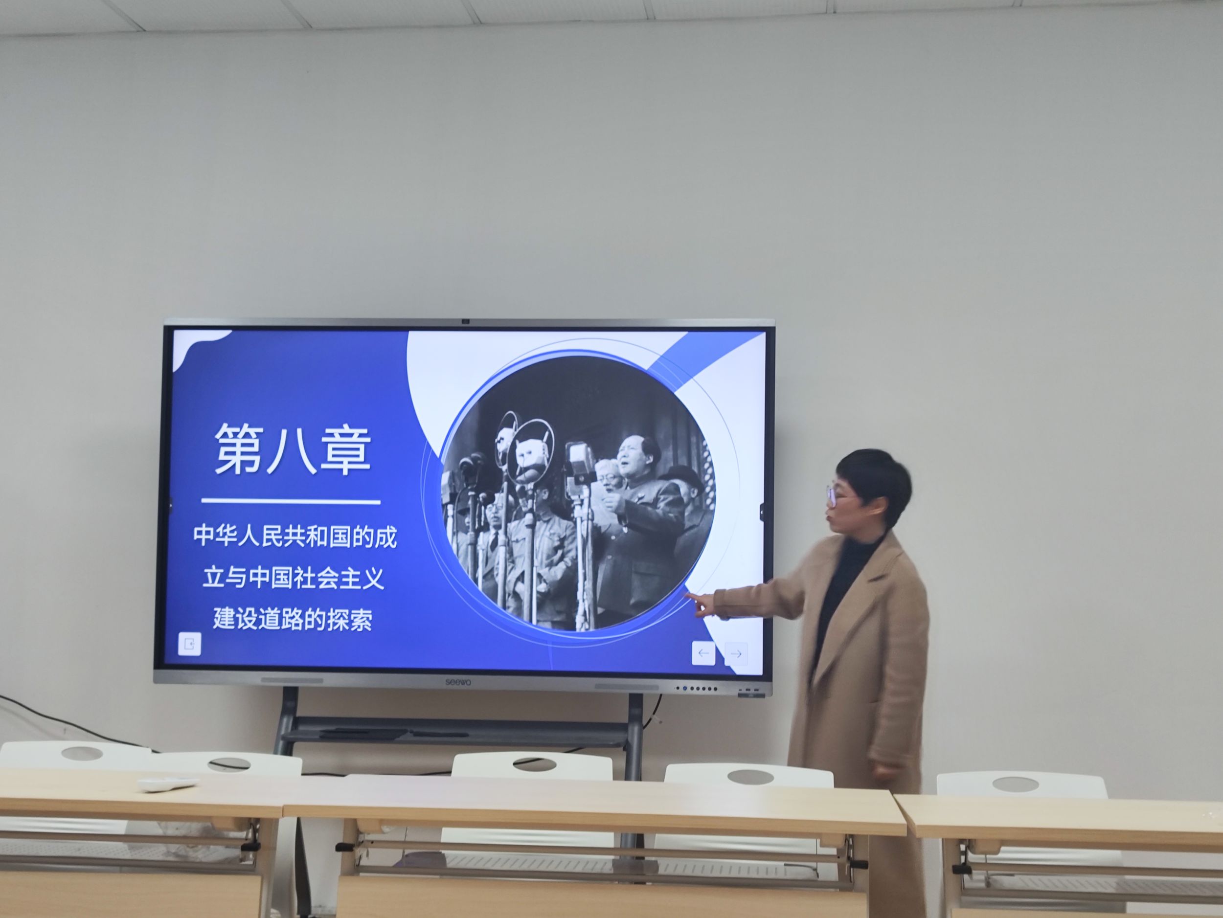 何晔老师就如何上好第八章《中华人民共和国的成立与中国社会主义建设道路的探索》进行了备课分享,分析了党在过渡时期总路线提出的历史必然性,阐述了新中国进行社会主义改造的必然性,总结了社会主义改造的基本经验,同时强调问答、自由发言等互动教学的重要作用。