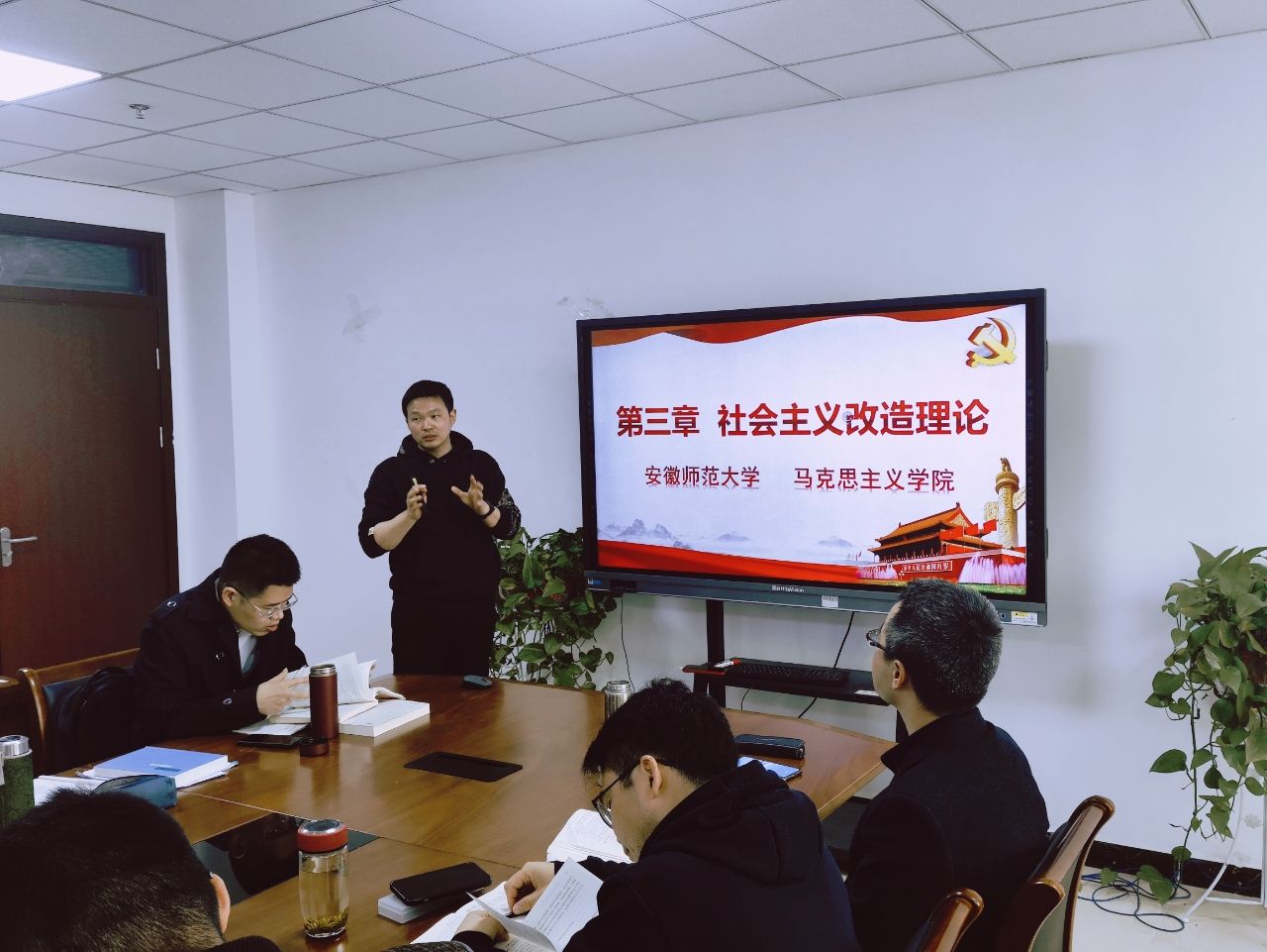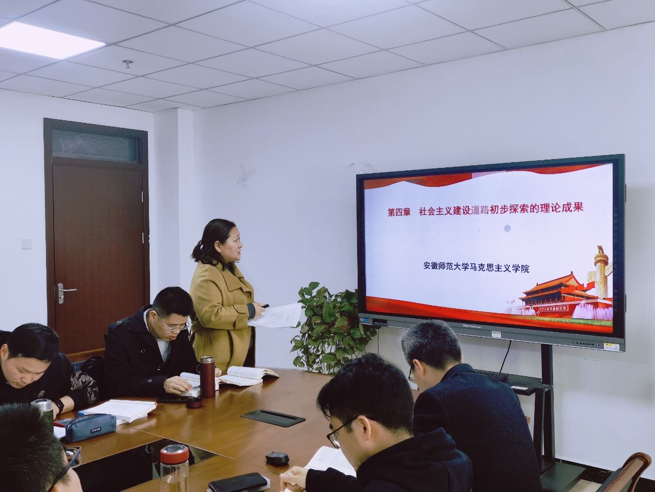 在备课会分享环节,曹明臣围绕第二章《新民主主义革命理论》的教学目标、教学重难点、教学思路等问题进行介绍,并着重分析了新民主主义革命的性质、道路、特征和基本经验等教学内容。张鑫围绕第三章《社会主义改造理论》的重难点,通过分析新中国成立后的国内外时局,系统阐述了新民主主主义向社会主义转变的历史必然性,并通过丰富的教学视频展现社会主义基本制度在中国确立的重大意义。李文婷就如何上好第四章《社会主义建设道路初步探索的理论成果》进行了备课分享,分析了社会主义建设道路初步探索的重要理论成果,总结了社会主义道路初步探索的重要意义,指明了这一探索阶段的主要经验教训。