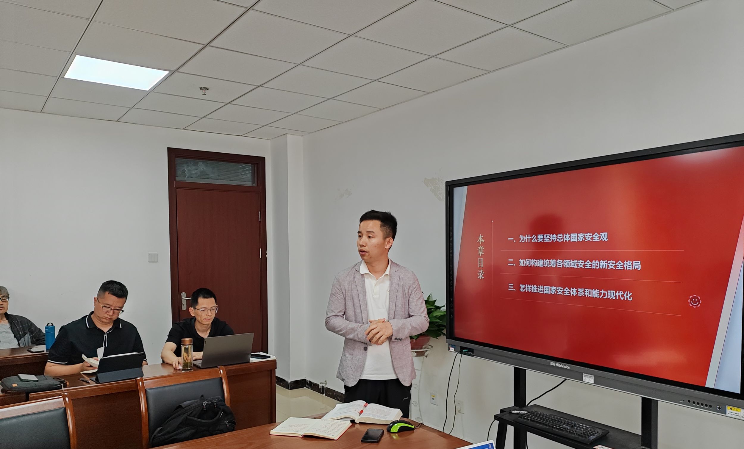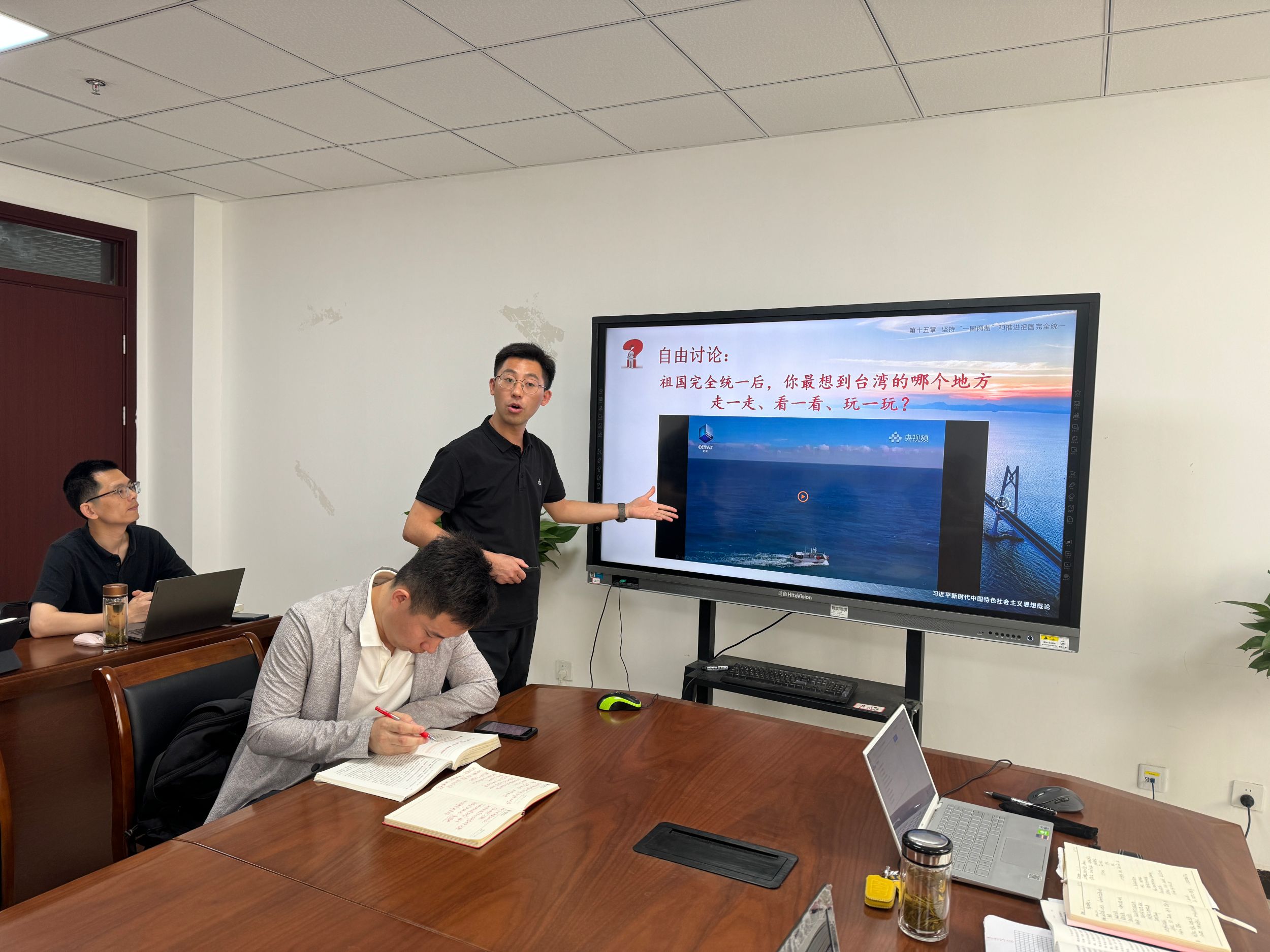 备课会上,潘二亮、欧明容、朱士华、沈燕培四位老师先后围绕“维护和塑造国家安全”“坚持‘一国两制’和推进祖国完全统一”“中国特色大国外交和推动构建人类命运共同体”“全面从严治党”等专题,阐述了教学思路、教学设计,进行了专题教学展示。与会教师围绕上述专题,从课程导入的方式、教学重难点的把握、教学方法的运用、教学案例的选择等方面展开了热烈讨论。