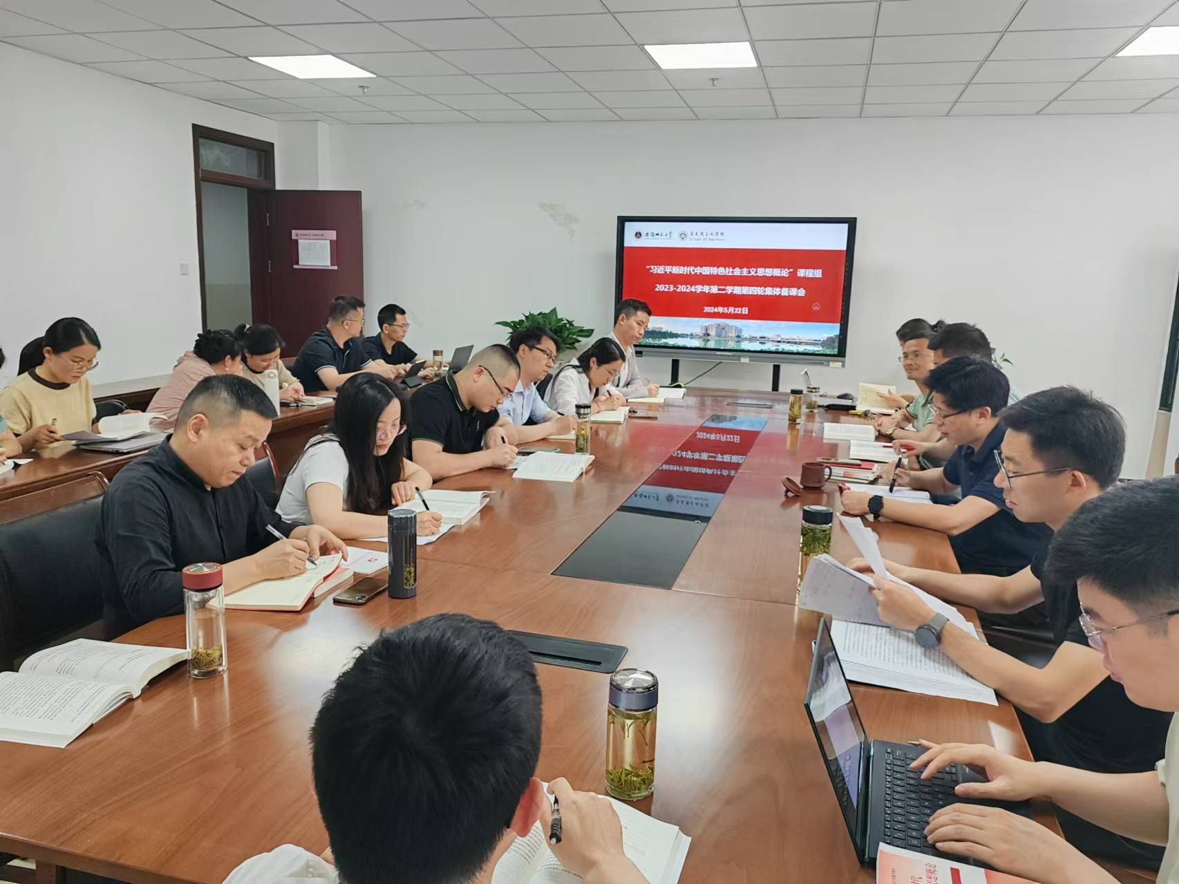 5月22日下午,《习近平新时代中国特色社会主义思想概论》课程组在beet365G211会议室进行本学期第四次集体备课会。公司党委书记严宏教授及课程组全体专兼职教师参加了集体备课会。集体备课会由教研室主任沈燕培教授主持。