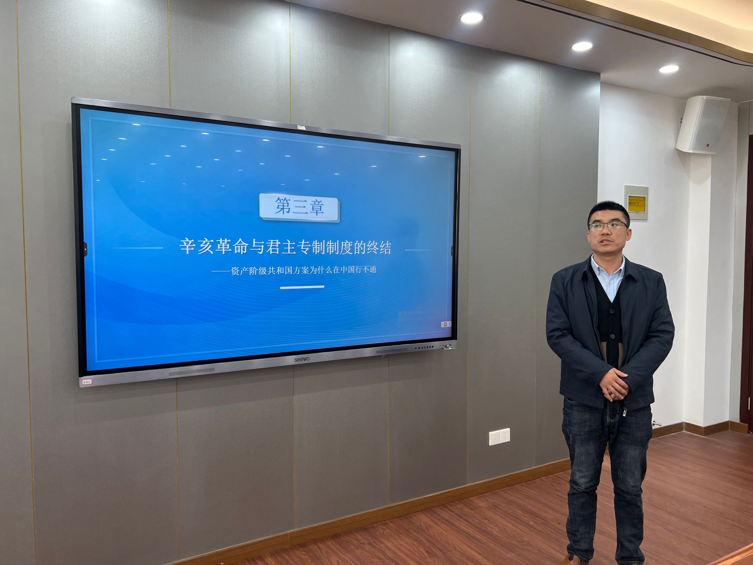 备课会伊始,课程组负责人郭理介绍了本次备课的主题与目标,就《中国近现代史纲要》课程现阶段的课程难点和教学要点进行了深入分析,强调思政课教师要认真把握上课的每个环节,把握教材精神,推进备课规范化。随后,孔卫拿老师就第三章《辛亥革命与君主专制制度的终结》从章节主要内容、教学重难点、教学思路和素材运用等方面进行汇报和交流。徐佳老师就第四章《中国共产党成立和中国革命新局面》梳理了教材的结构内容体系,并就教学思路的展开、教学互动的设计、教学案例的遴选和教学方法的使用等进行了汇报和交流。陈冬冬老师就第五章《中国革命新道路》对教学内容的设计、教学手段的运用进行了详细的介绍与分享,条理清晰,重点突出。徐晓光老师就第六章《中华民族的抗日战争》进行了教学设计思路的展示,通过问题式探讨与丰富的案例讲解阐述了本章节的重点与难点内容,案例生动新颖、流程完整。之后,教师们围绕教材内容结构、教学目标设定、教学方法选择、课堂环节设计等多个方面展开了深入的讨论与交流。教师们畅所欲言,分享了自己的教学心得与经验,针对教学中遇到的困惑与问题提出了宝贵的建议。