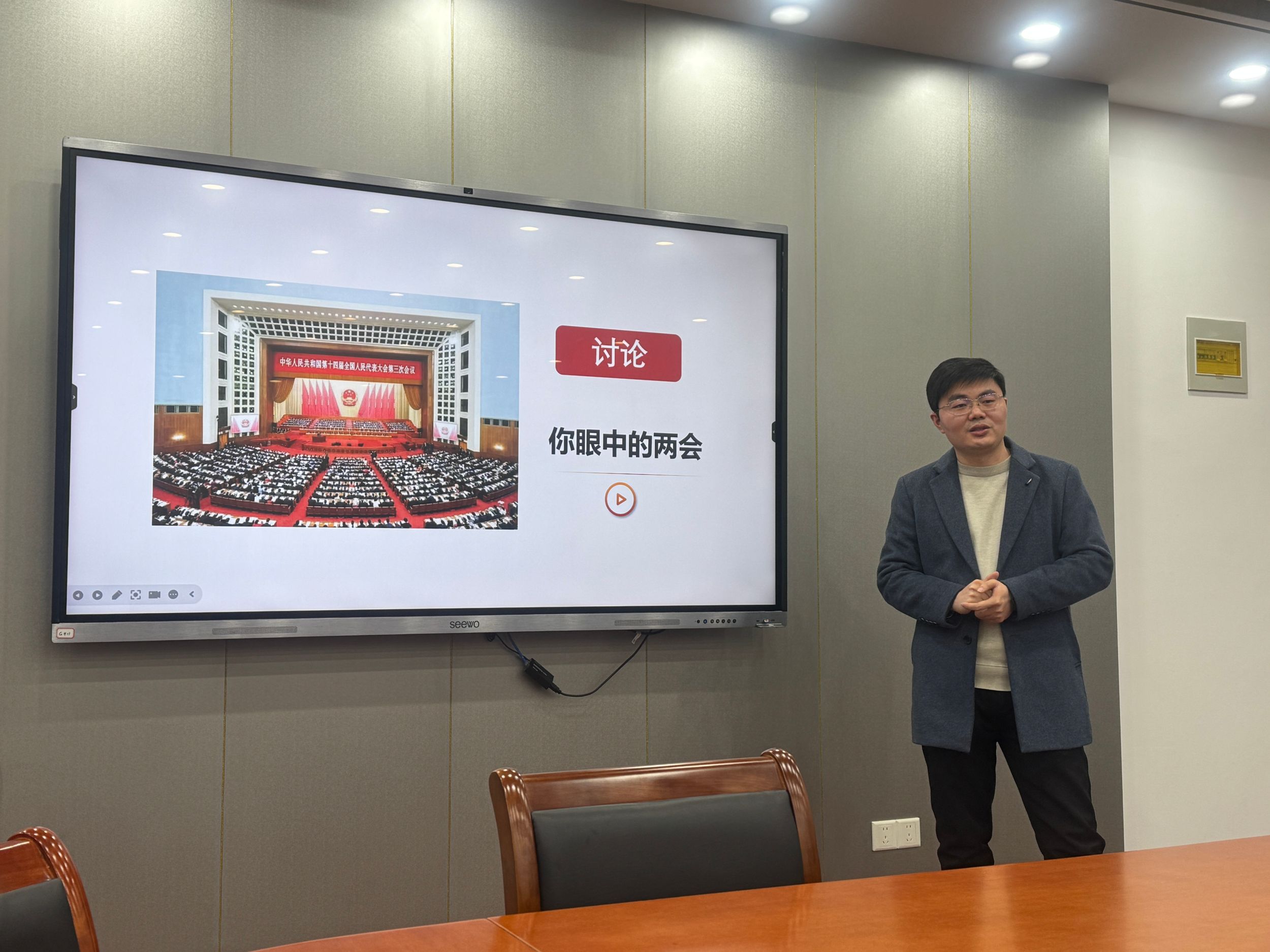 备课会上,匡宁、赵华美、严宏、王勇刚四位老师分别从“全面深化改革开放”“推动高质量发展”“社会主义现代化建设的教育、科技、人才战略”“发展全过程人民民主”等方面,将习近平总书记重要讲话精神和全国两会精神融入课程的具体专题教学中,并进行了微课展示。与会老师就这四个专题的课程导入、案例选择、重点难点、学习通的使用等问题进行了深入的交流研讨,不断探索提升课堂“抬头率”“点头率”的有效举措等。