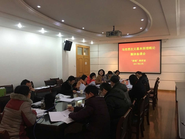 2017年2月9日下午,“马克思主义基本原理概论”(以下简称“原理”)课程组在公司四楼会议室召开了新学期集体备课会。受教课程组负责人余在海的委托,方敏老师主持此次备课会,本学期承担“原理”课教学任务的所有老师参加了会议。汪盛玉副经理在备课会上向大家传达了公司新版本科思政课教学的相关要求和精神——充分发挥教师的主导性和员工的主体性,围绕理论知识要点,设置专题,教师精讲;实践教学结合理论专题要点,开展主题活动,然后她就如何实施新方案进行了详细解读。汪经理特别指出,由于新方案增加了实践专题课这一环节,所以在执行当中务必保证落实到位,不能流于形式、走过场,同时既要讲原则性也要有灵活性,授课教师可以根据具体情况采取合适的方法,不必强求一律。方敏老师也就新学期的教学进度和教学大纲方面的问题向大家做了通报。