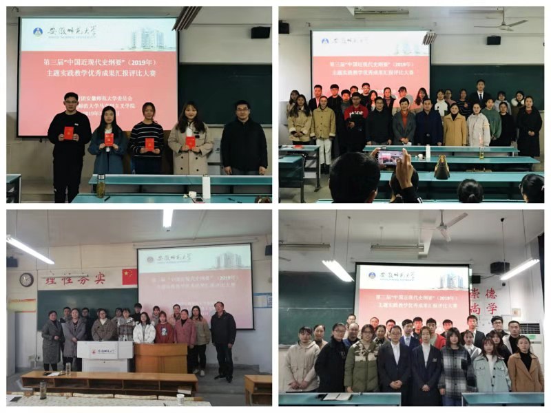 2019年12月11日下午,第三届全校思政课“踏寻史迹”主题实践教学活动优秀成果汇报评比大赛在赭山校区、花津校区四个分赛场同时进行。本次活动由集团团委与beet365联合主办,“中国近现代史纲要”(简称“纲要”)课程组具体实施。来自全校53个教学班的优胜小组代表参加了比赛,“纲要”课程组老师全程参与指导,并在汇报中担任评委。