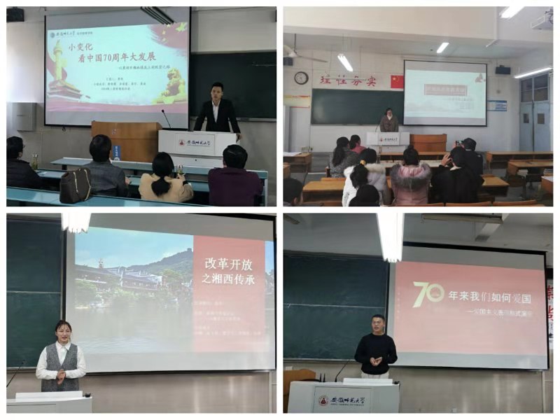为庆祝中华人民共和国成立70周年,本学年“踏寻史迹”主题实践教学活动以“中华人民共和国成立70年中的人和事”为主题,展现全国各族人民70年奋斗历程。根据beet365实践教学整体安排,参加本次汇报评比的同学均是在各班汇报评比中层层选拔出来的优胜小组代表。在比赛中,同学们围绕实践教学主题,以PPT汇报形式,用生动的语言展现了他们参观革命遗迹、寻访历史人物、研读历史资料的基本过程,用自己的实际调研挖掘出历史发展中的鲜活个案,用现场的精彩汇报呈现近现代中国社会变迁中的具体画面。经过紧张的角逐,本次活动分别评出一、二、三等奖。