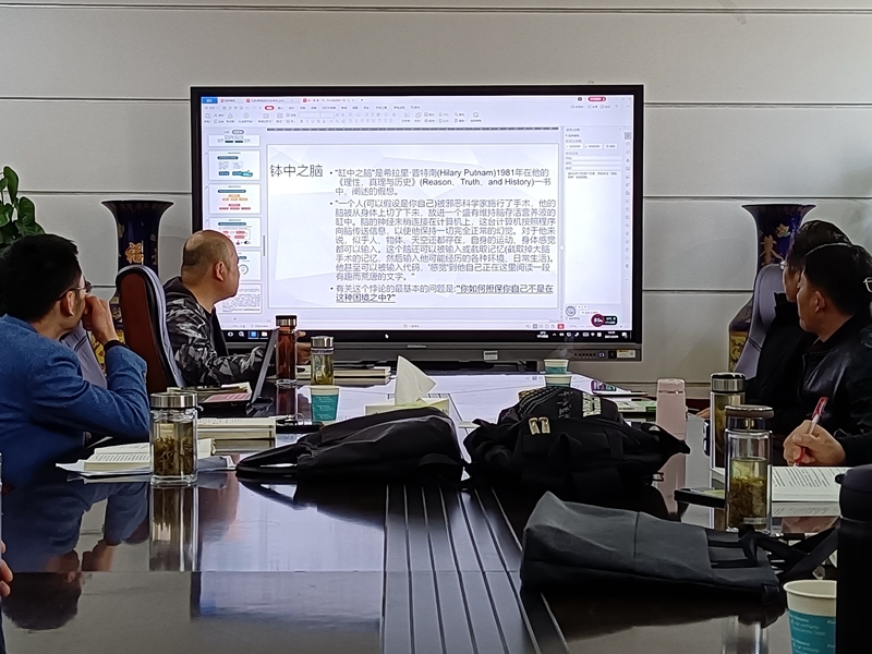此次备课会主要包括两个环节:(1)张添翼老师分享了教材第一章“世界的物质性及发展规律”的教学设计。张老师深挖中西哲学史的教学资源,追踪社会生活的焦点热点,精心选择了大量教学案例,充分展示了扎实的教学基本功;(2)李晓明老师分享了第二章“实践与认识及其发展规律”的教学设计。李老师充分发挥自身科技哲学的专业优势,结合理工科员工的特点,选取了大量物理学、化学、生物学等学科案例,贯彻了原理课程的分类教学模式。两位老师分享后,彭启福、余在海等课程组老师针对两位老师的分享,各自发表自己看法,特别是自己在教学实践过程中的心得体会。