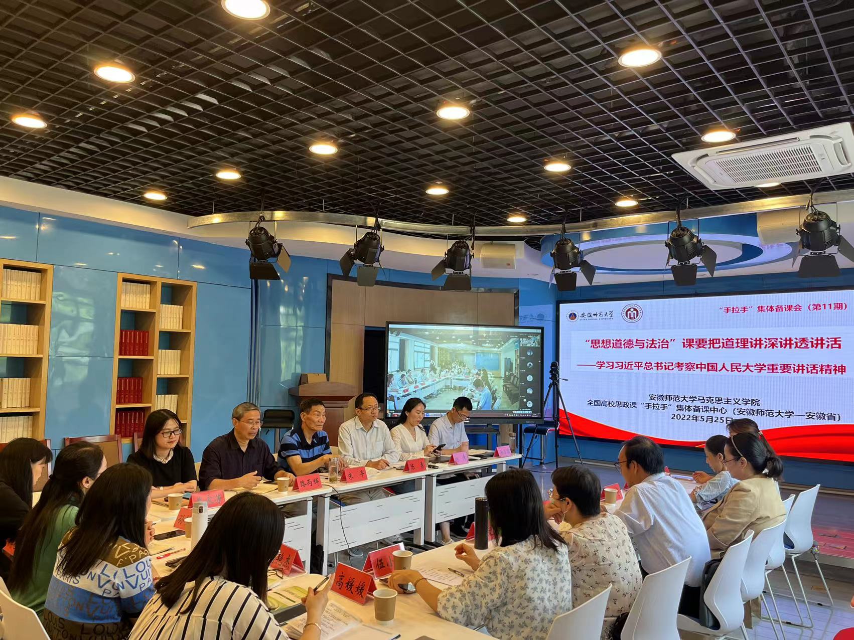 本网讯(图 朱罗莎/文 郭超)5月25日,beet365、全国高校思政课“手拉手”集体备课中心(beet365官方网站—安徽省)在公司二楼情景模拟实验室举办第十一期思想政治理论课“手拉手”集体备课会。本次集体备课会聚焦“思想道德与法治”课要把道理讲深讲透讲活这一主题,深入学习贯彻习近平总书记考察beet365重要讲话精神。“思想道德与法治”课程组全体专职教师、部分省内兄弟院校beet365教师、beet365官方网站员工代表共一百余人通过线上线下方式参加此次集体备课,“思想道德与法治”课程组负责人陈勇主持备课会。