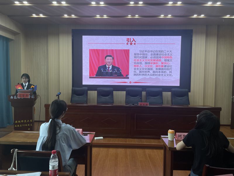 宣讲员梁懿婷的主题为“十载风华,凯歌前行”,在恢弘的音乐的衬托下,她用心用情地描述了新时代十年取得的伟大成就,介绍了新时代十年来涌现出的一批社会主义事业的伟大建设者,并鼓励大家交出属于自己的青年答卷。宣讲员郑瑶雪为学员带来主题为“坚守中华文化立场,铸造中华民族之魂”的宣讲。她从“举旗帜、聚民心、育新人、兴文化、展形象”五点内容分别讲述了文化自信自强对社会主义文化发展的重要性,宣讲中引经据典,并举了许多贴切的例子,让学员们深刻体会到了党和国家全新局面的强大正能量。宣讲员严彩虹的宣讲主题是“青春向党,献礼二十大——百年大党的青春力量”,她讲述了百年前青年革命者的风貌与精神,以陈延年、陈乔年两位革命家的故事为例,赞扬了青年革命家不怕牺牲为革命的精神,鼓励大家要以实现中华民族伟大复兴为己任,增强做中国人的志气、骨气、底气。宣讲员邓多围绕“青山绿水慰我心,人与自然和谐生”主题为大家介绍了二十大报告中推动绿色发展,促进人与自然和谐共生的相关内容,生态兴则文明兴、生态衰则文明衰,大自然是人类赖以生存发展的基本条件,只有我们每个人都在二十大精神的指引下共同努力保护环境,才能真正建设绿色家园。