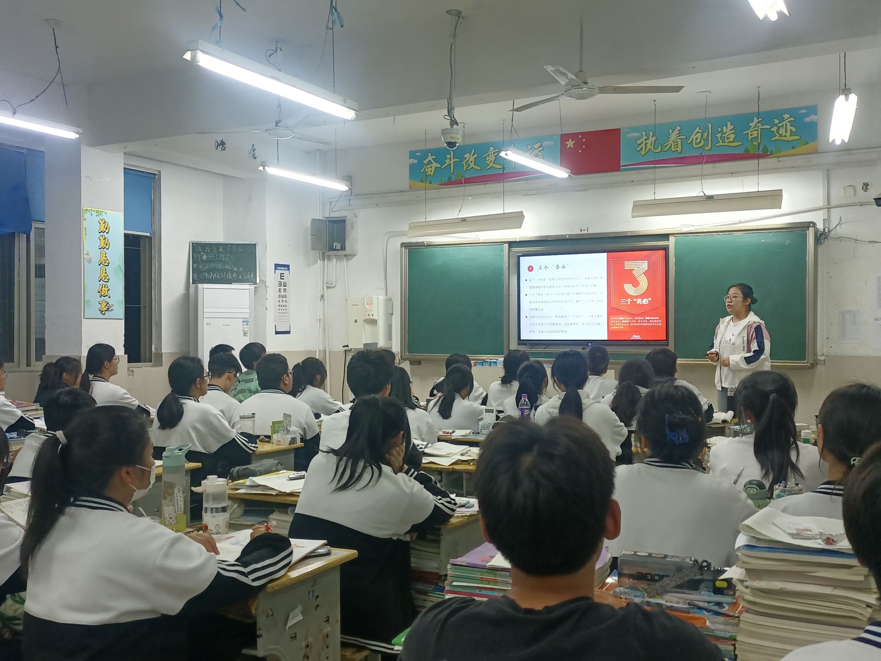 支部党员周勤松选取《习近平新时代中国特色社会主义思想学习纲要(2023版)》为主要书目,从简要说明、核心地位作为、希望寄予青年、奋斗就在当下四个部分展开讲解,鼓励同学们坚持不懈用习近平新时代中国特色社会主义思想武装自己,激励同学们把爱国之情转化为学习的动力,为祖国建设贡献出一份力量。谢颖婕、胡文涛、乔婷婷组建了“薪火相传”老员工党员宣讲团,开展了以学习《习近平著作选读》为主题的理论宣讲活动。宣讲员谢颖婕从出版背景、主要内容、现实意义这三个部分向同学们开展了关于学习《习近平著作选读》理论宣讲活动,激励同学们永远跟党走,奋进新时代。俞晶晶以“自我革命:跳出历史周期率的第二个答案”为主题,结合高中思想政治的内容,从自我革命的理论逻辑、自我革命的历史逻辑和自我革命的实践逻辑三个角度出发,对党的自我革命进行了深入的阐释和讲解。