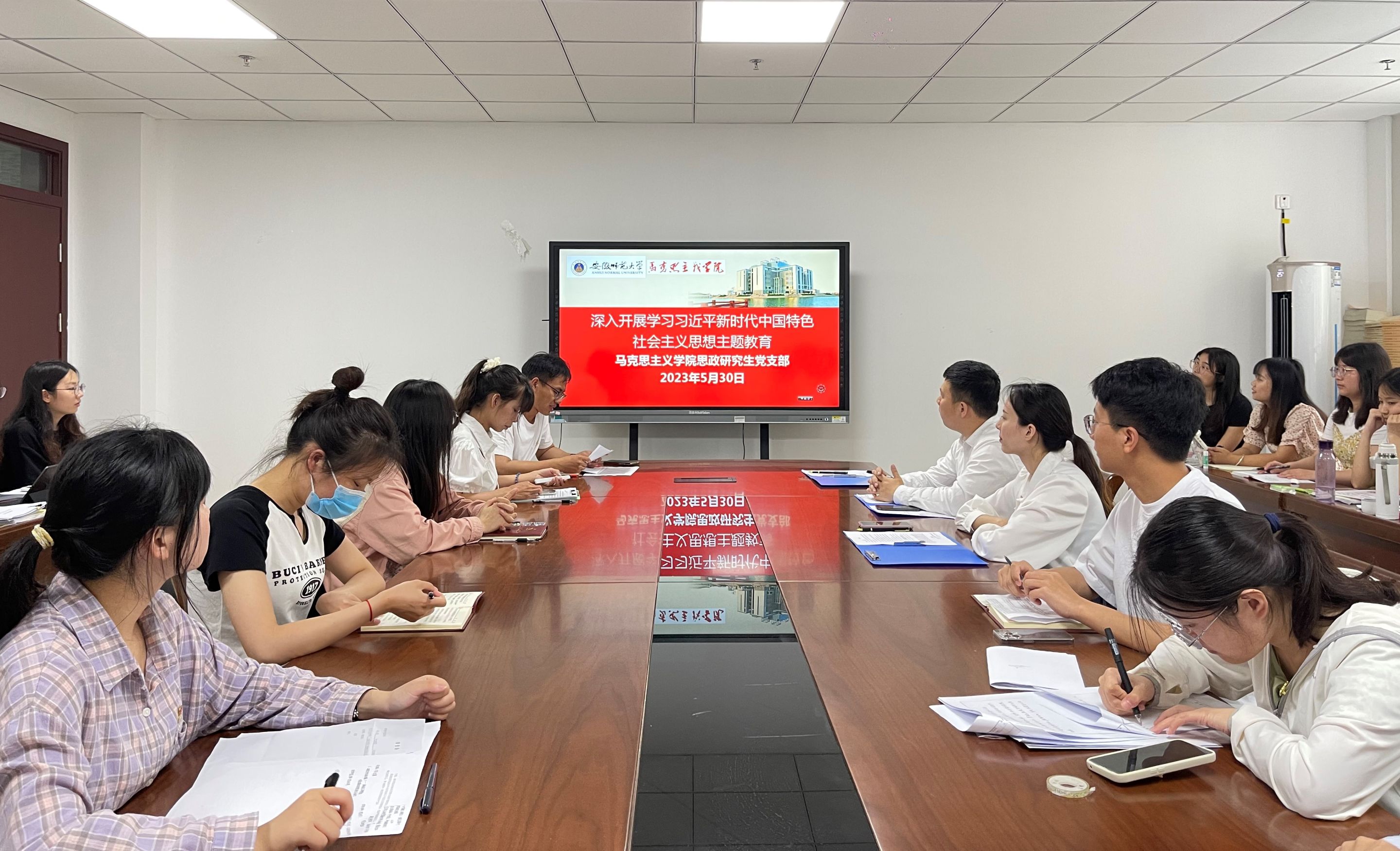 5月30日上午,思政研究生党支部在beet365G211室开展“以学铸魂 以学增智 以学正风 以学促干”——学习贯彻习近平新时代中国特色社会主义思想主题教育暨“三问”专题交流研讨党日活动。本次党日活动由纪检委员张鹏虎主持,支部全体党员同志参加活动。