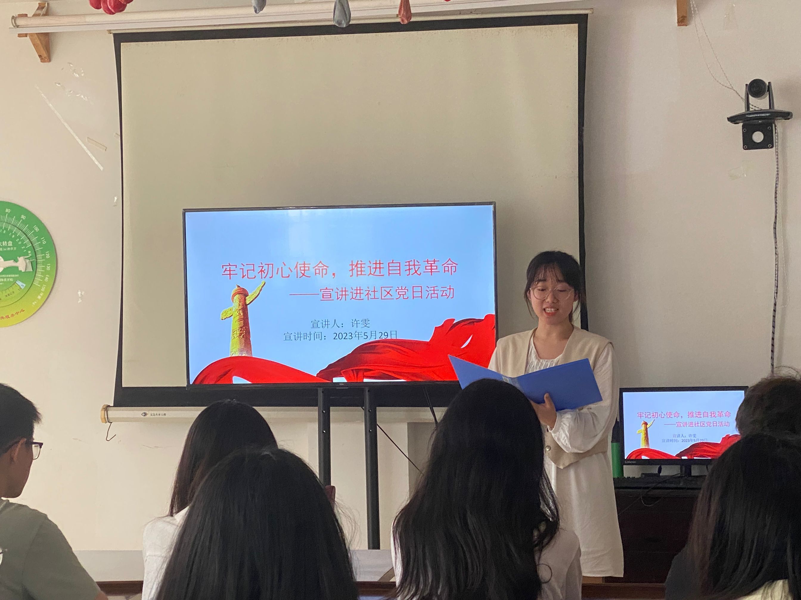 许雯以“牢记初心使命,推进自我革命”为主题,号召广大青年要从自身出发,全面增强履职尽责的本领,以实际行动践行初心使命,践行自我革命,以高度自觉的政治担当、历史担当、责任担当投身于社会主义现代化建设之中去。张媛媛分享了此次理论宣讲活动的感悟:作为一名预备党员,我将坚定不移地拥护党的领导,自觉向书本学习、向实践学习、向人民群众学习,始终牢记初心使命,坚持推进自我革命。张媛媛的发言赢得了热烈的掌声。大家纷纷表示,通过本次“理论宣讲进社区”活动,增进了自己对习近平新时代中国特色社会主义思想的认识和理解,未来也将会始终坚持用党的创新理论来武装头脑,做到学思用贯通、知信行统一。