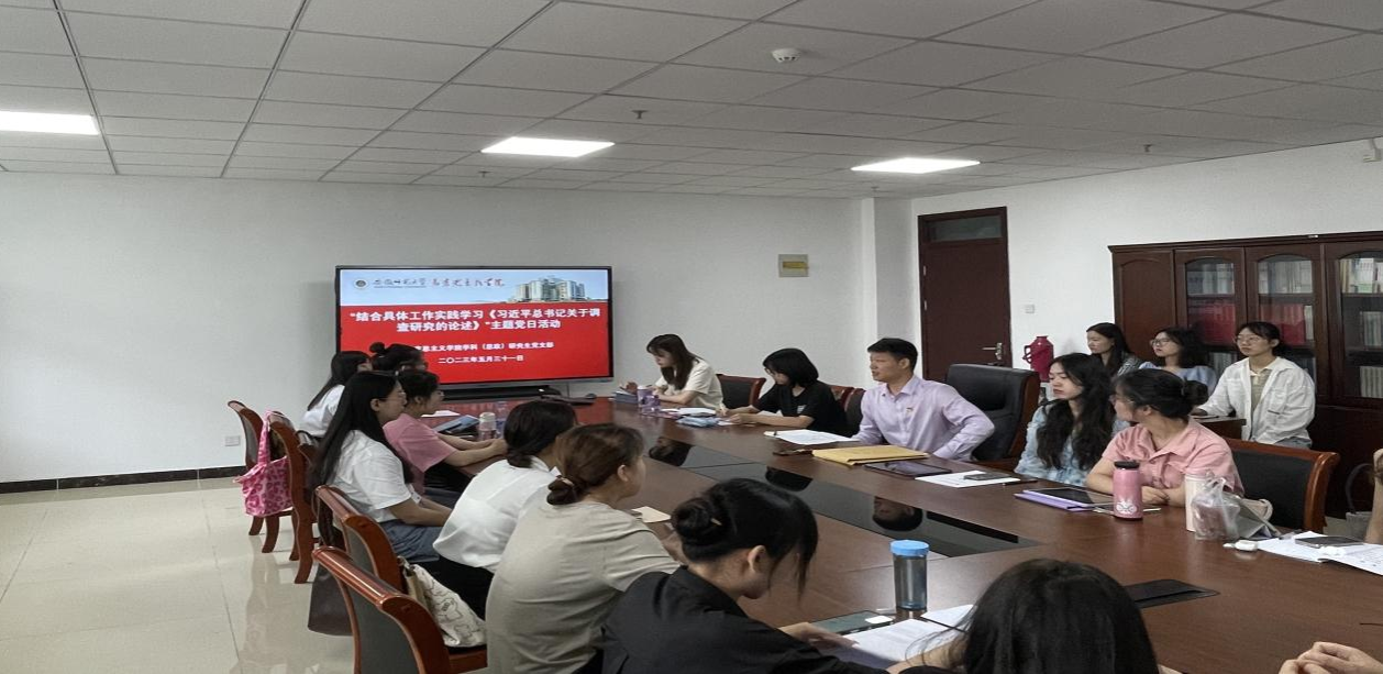 党支部陈春苗同志结合自身工作实践带领支部党员从什么是调查研究、为什么要进行调查研究、如何贯彻落实调查研究三个方面学习了《习近平关于调查研究论述摘编》。陈春苗同志指出作为一名学科思政专业的员工,我们即将从事政治课教学,只有始终坚持和不断加强调查研究,才能全面系统掌握习近平新时代中国特色社会主义思想的基本观点、科学体系,增进对党的创新理论的思想认同、理论认同、情感认同。