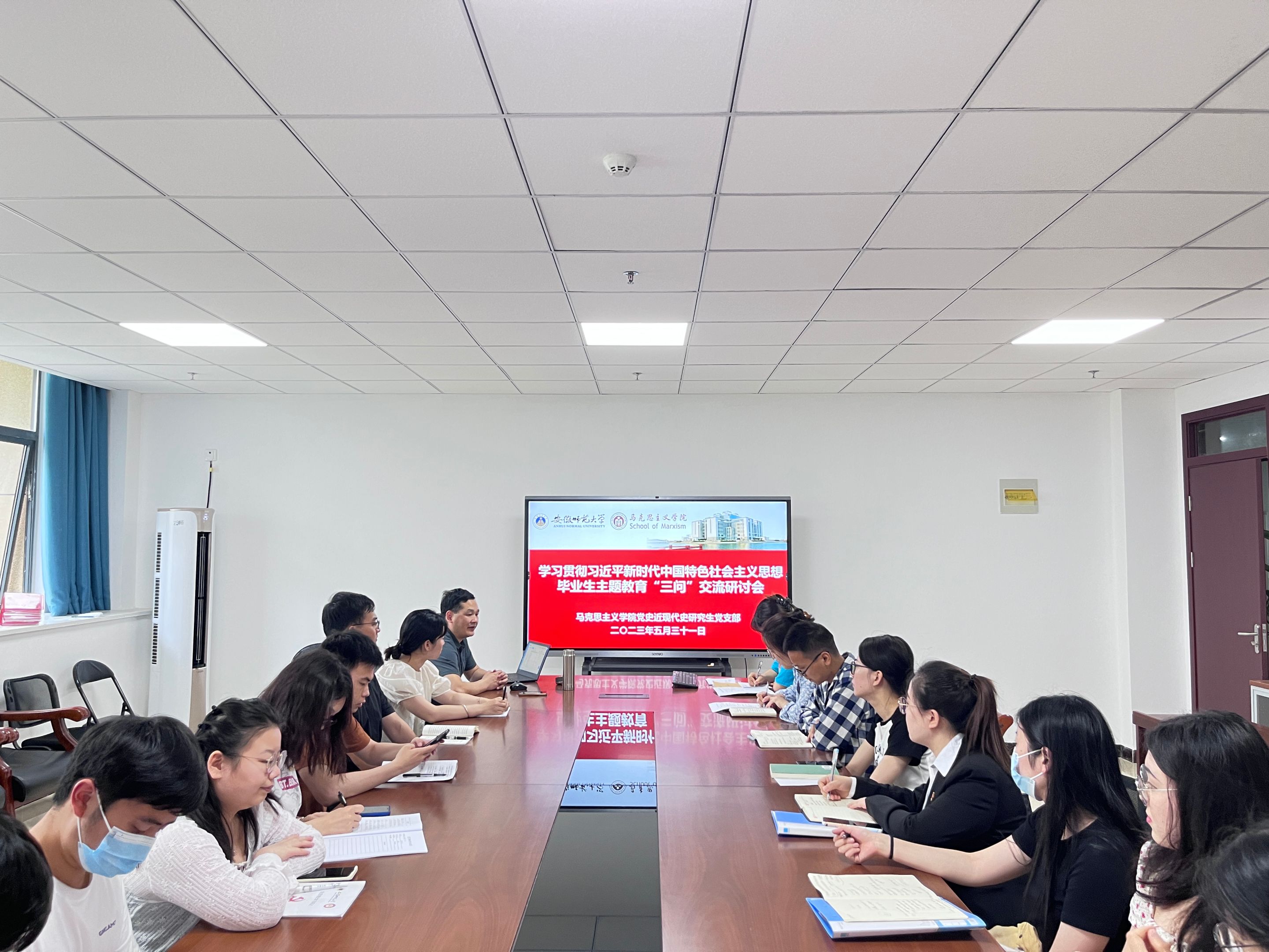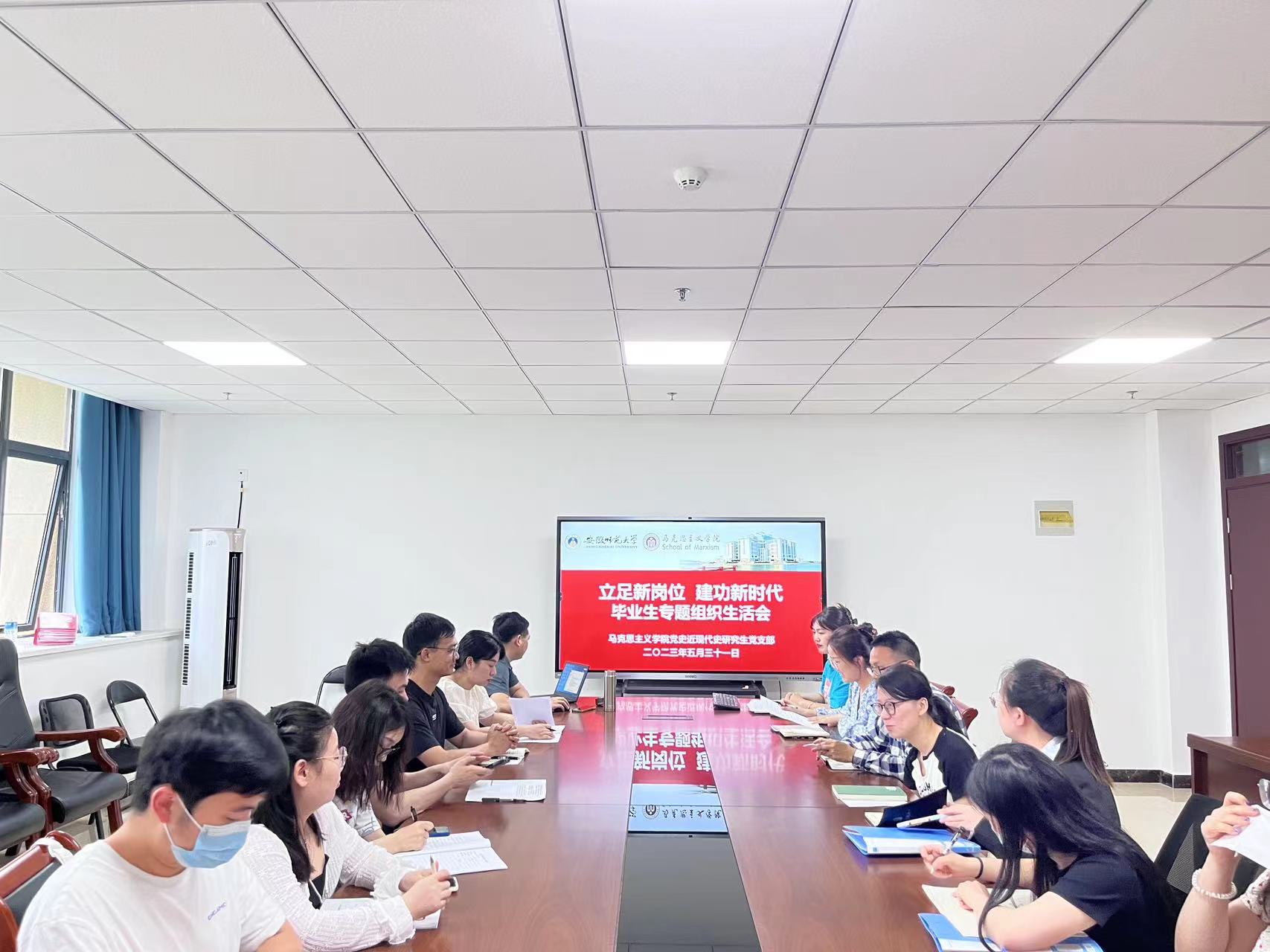 5月31日下午,党史近现代史研究生党支部在公司G411会议室召开“立足新岗位 建功新时代”毕业生专题组织生活会,支部党员围绕“三问”开展学习交流。活动由支部书记陶娴静主持,党委委员、副经理李祥兴莅临指导,支部全体党员同志参会。