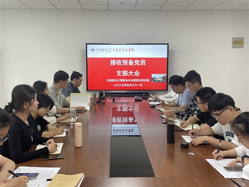 5月31日下午,马中化研究生党支部在文科大楼G411办公室召开支部大会,讨论接收王玮泽同志为预备党员和闫志远、吴俊、张珈珲三位预备党员转正的相关事宜。公司党委委员、副经理李祥兴到会指导,会议由支部组织委员洪浪颖主持,支部全体党员参加。