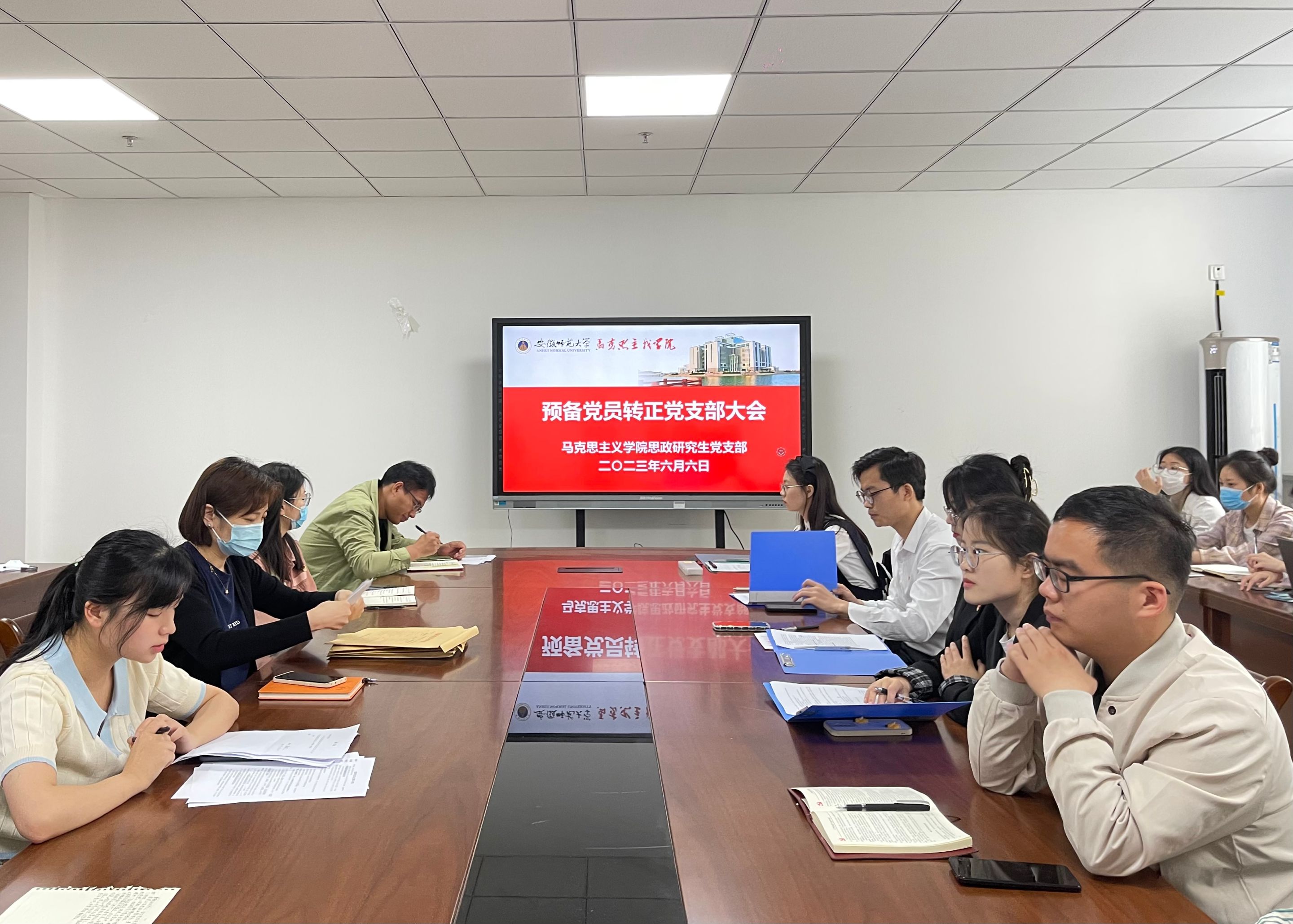 6月6日上午,思政研究生党支部在beet365行政楼二楼G211室召开预备党员转正支部大会,讨论夏雨等4位预备党员的转正事宜。公司党委副书记刘玉艳莅临指导。本次会议由支部书记汪翠萍主持,支部全体党员同志参加。