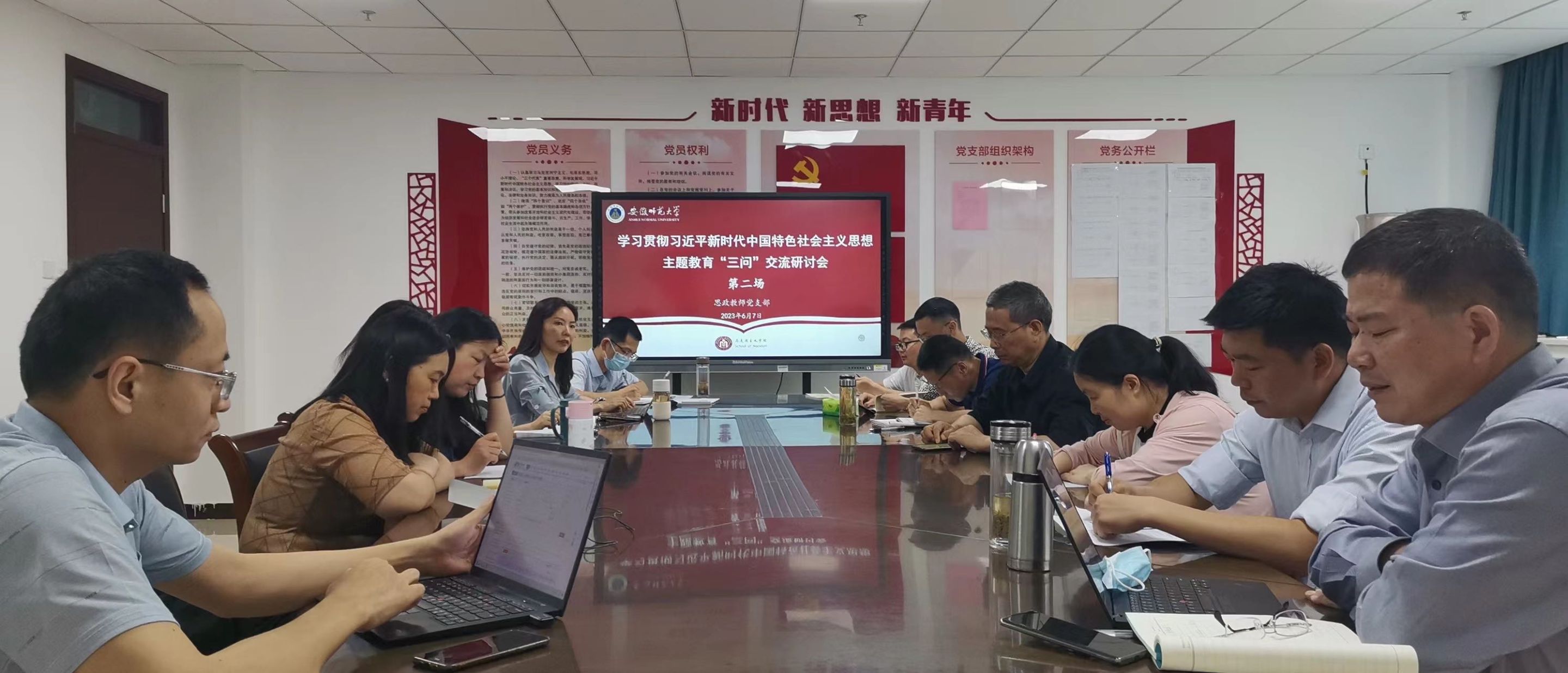 本次活动共安排五位同志就“过去学得怎么样、现在干得怎么样、将来打算怎么办”的“三问”展开交流研讨。汤小宾老师结合自身的工作实际和课程教学内容展开论述,强调要学用结合、学以致用,在教学科研中强化主题教育。郭超老师表示,尽管自己过去对习近平新时代中国特色社会主义思想进行了系统学习,但是不够深入,特别是在内容的融会贯通、教材体系向教学体系转化上有待提升,下一步将在读原著、悟原理上下工夫,以学增智、教学相长。叶荣国老师着重结合本学期备课和教学体会,认为一定要认真研读习近平新时代中国特色社会主义思想,把握其核心内容,在实际教学中讲清楚理论的来龙去脉,真正为员工答疑释惑。李婧老师表示在教学过程中要把理论和实际结合起来,努力做到深入浅出,提高教学效果,并表示今后在科研上要有所突破。王习胜老师结合近期自身工作实际,认为思政课老师在主题教育活动中要重点突出研究性学习,特别是要在学理上将讲清楚习近平新时代中国特色社会主义思想的原创性贡献,并表示将进一步加强理论学习,做好习近平新时代中国特色社会主义思想阐释工作,此外,王老师告诫在座的思政课老师一定要守住底线,在教学过程中,特别是不要刻意追求出彩而失去底线。通过本次学习研讨,党员同志们纷纷表示今后将进一步加强学习,把学习贯彻习近平新时代中国特色社会主义思想与日常学习工作相结合,切实把主题教育落到日常教学科研工作实际中来,真正做到以学铸魂、以学增智、以学正风、以学促干。