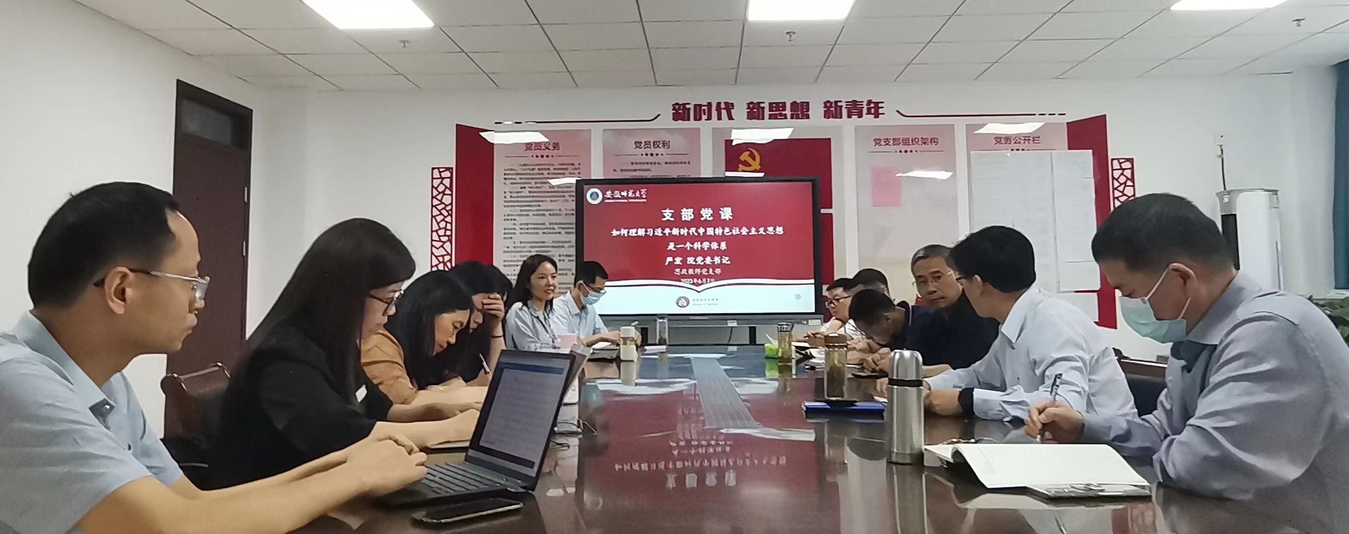 6月7日下午,公司党委书记严宏在公司二楼会议室为思政教师党支部讲授《如何理解习近平新时代中国特色社会主义思想是一个科学体系》专题党课。本次专题活动由思政教师党支部书记杨希主持,支部全体党员参加。
