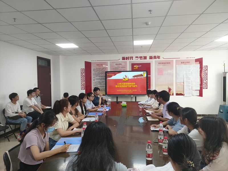6月9日下午,支部书记周楠在公司二楼本科生党支部会议室为本科生第一党支部党员讲授《以伟大建党精神涵养青年党员的志气骨气底气》专题党课,会议由张凤主持。
