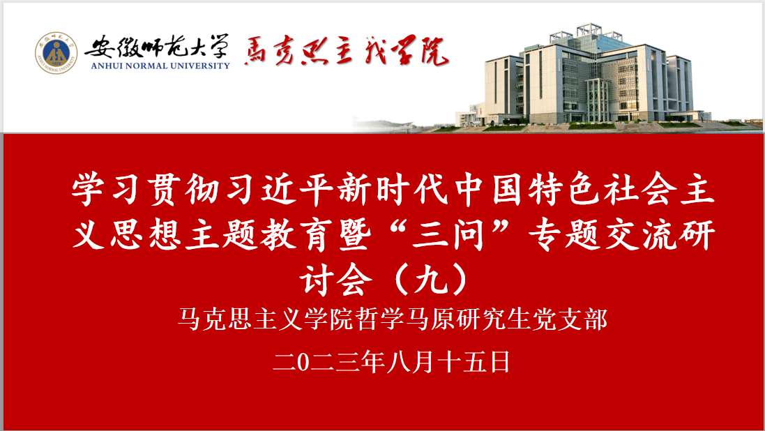 8月15日上午,beet365哲学马原研究生党支部在腾讯会议开展学习贯彻习近平新时代中国特色社会主义思想主题教育暨“三问”交流研讨会。此次活动由支部书记潘二亮主持,全体党员同志参加。