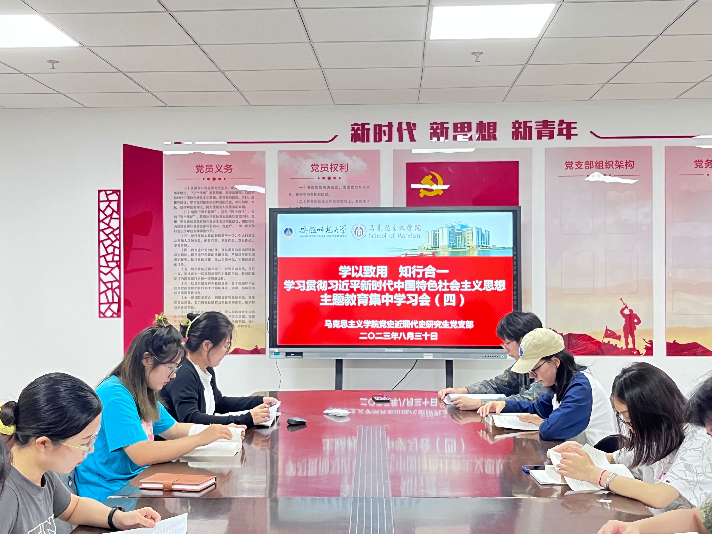 8月30日下午,党史近现代史研究生党支部在公司G215会议室开展学习贯彻习近平新时代中国特色社会主义思想主题教育集中学习会和“三问”交流研讨会(第四场)。会议由支部书记陶娴静主持,支部全体党员同志参会。
