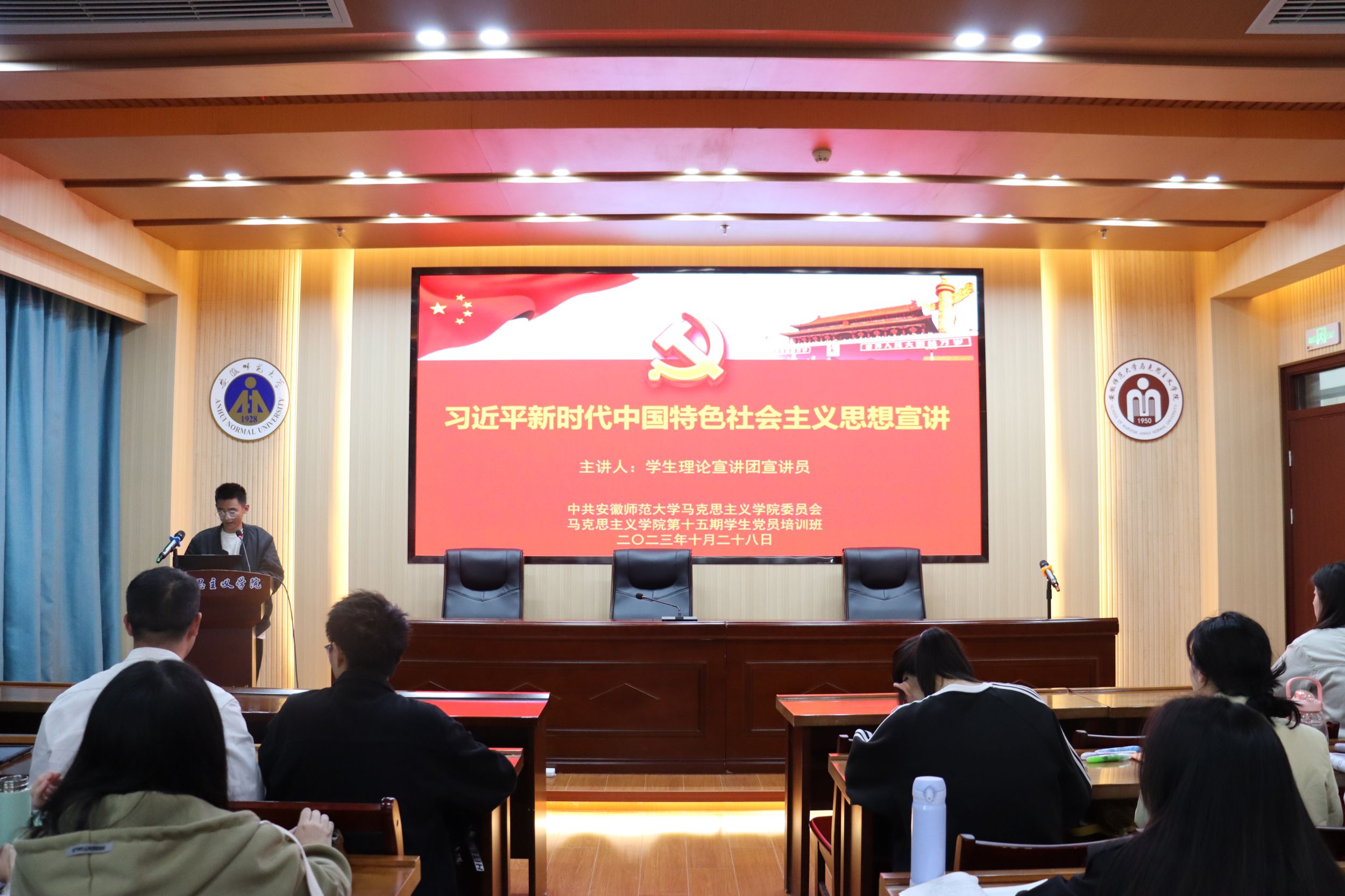 10月28日下午,员工理论宣讲团在马克思主义公司公司楼学术报告厅开展习近平新时代中国特色社会主义思想宣讲活动。本次宣讲会由中研会会长骆鹏晟主持,周语汐、梁懿婷、罗衍俊、管文静、李默涵等六名宣讲员分别进行精彩宣讲。