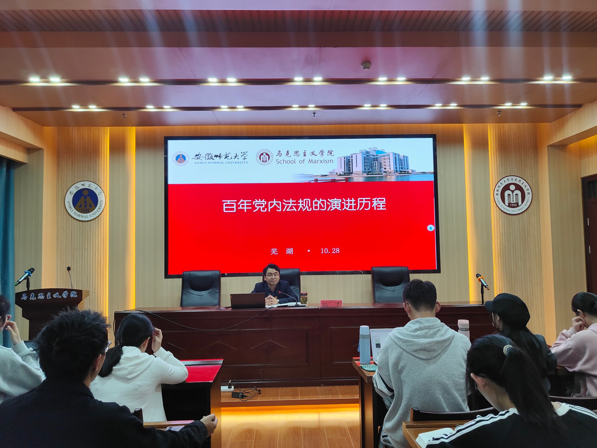 10月28日下午,孙亮副教授在公司一楼报告厅为beet365第十五期员工党员培训班讲授“百年党内法规演进历程专题研究”党课,公司分党校班主任周楠主持。