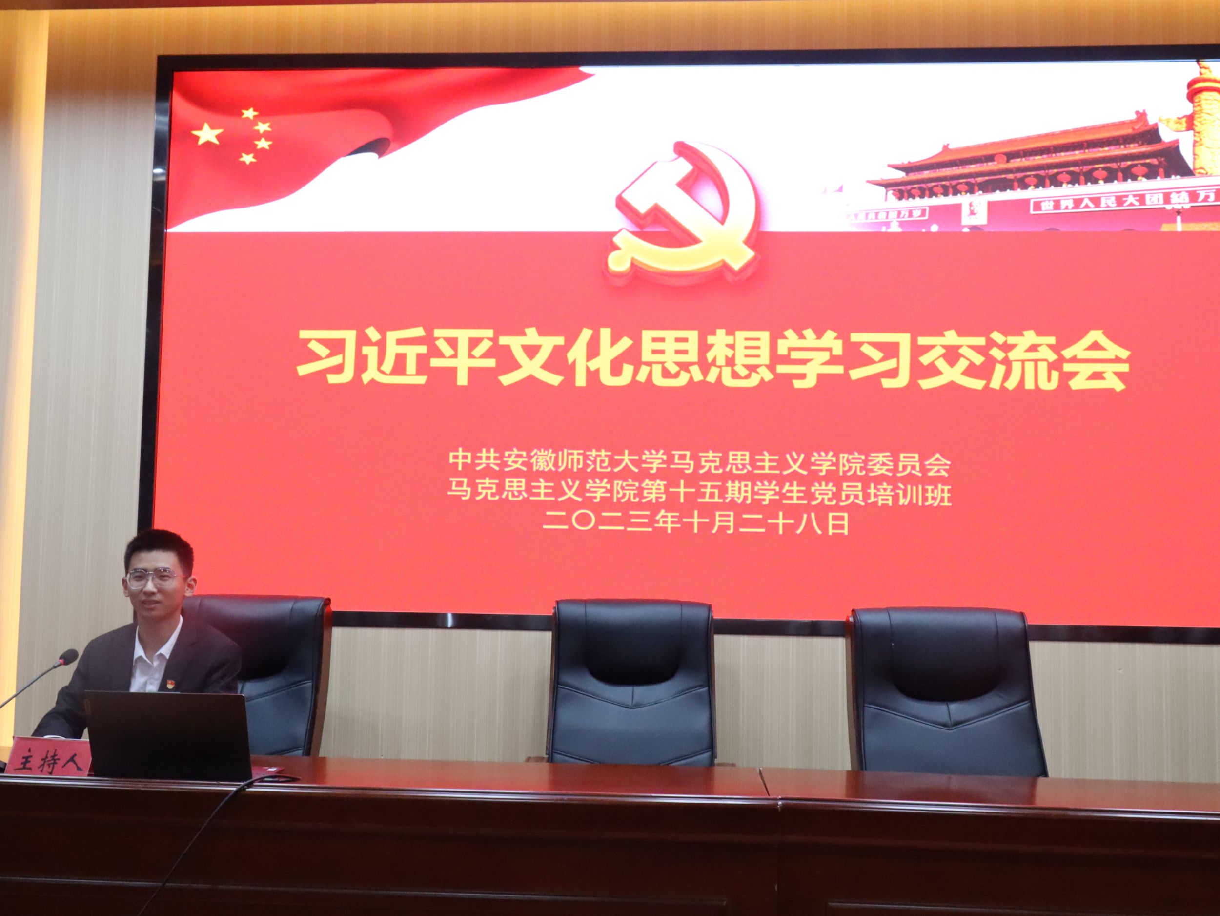 10 月28日晚,公司第十五期员工党员培训班在公司一楼报告厅开展习近平文化思想学习交流会。交流会由2021级思想政治教育专业本科生骆鹏晟主持,全体学员参加此次活动。