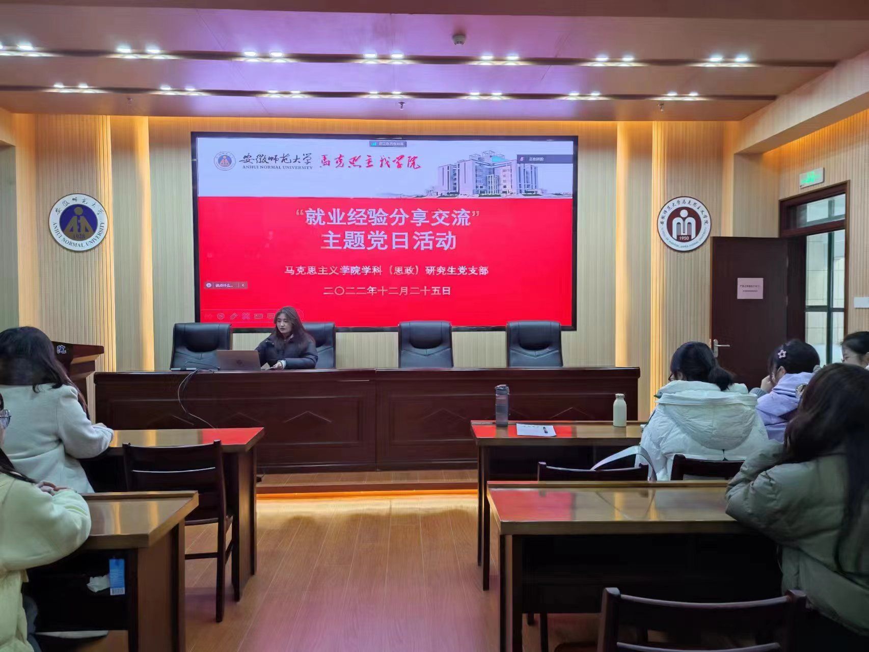 12月25日下午,学科(思政)研究生党支部在公司108会议室开展了“就业经验分享交流”主题党日活动,本次党日活动由支部书记夏盼盼主持,支部全体党员和入党积极分子通过线上+线下相结合的方式参加。