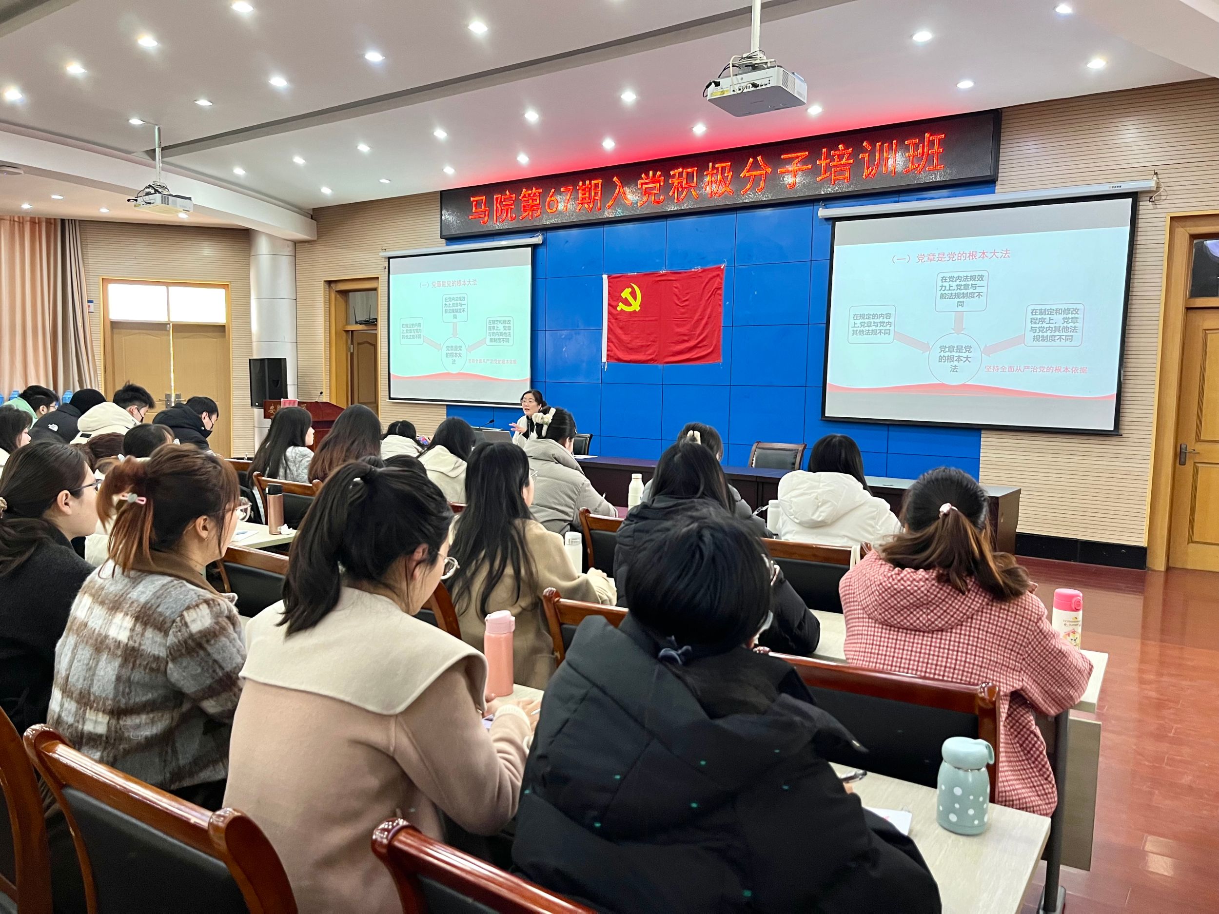 3月2日上午,沈燕培教授在会议中心第三报告厅为beet365第67期入党积极分子培训班讲授《深入学习贯彻党章,自觉维护党章权威》专题党课。党课由班主任周楠主持。