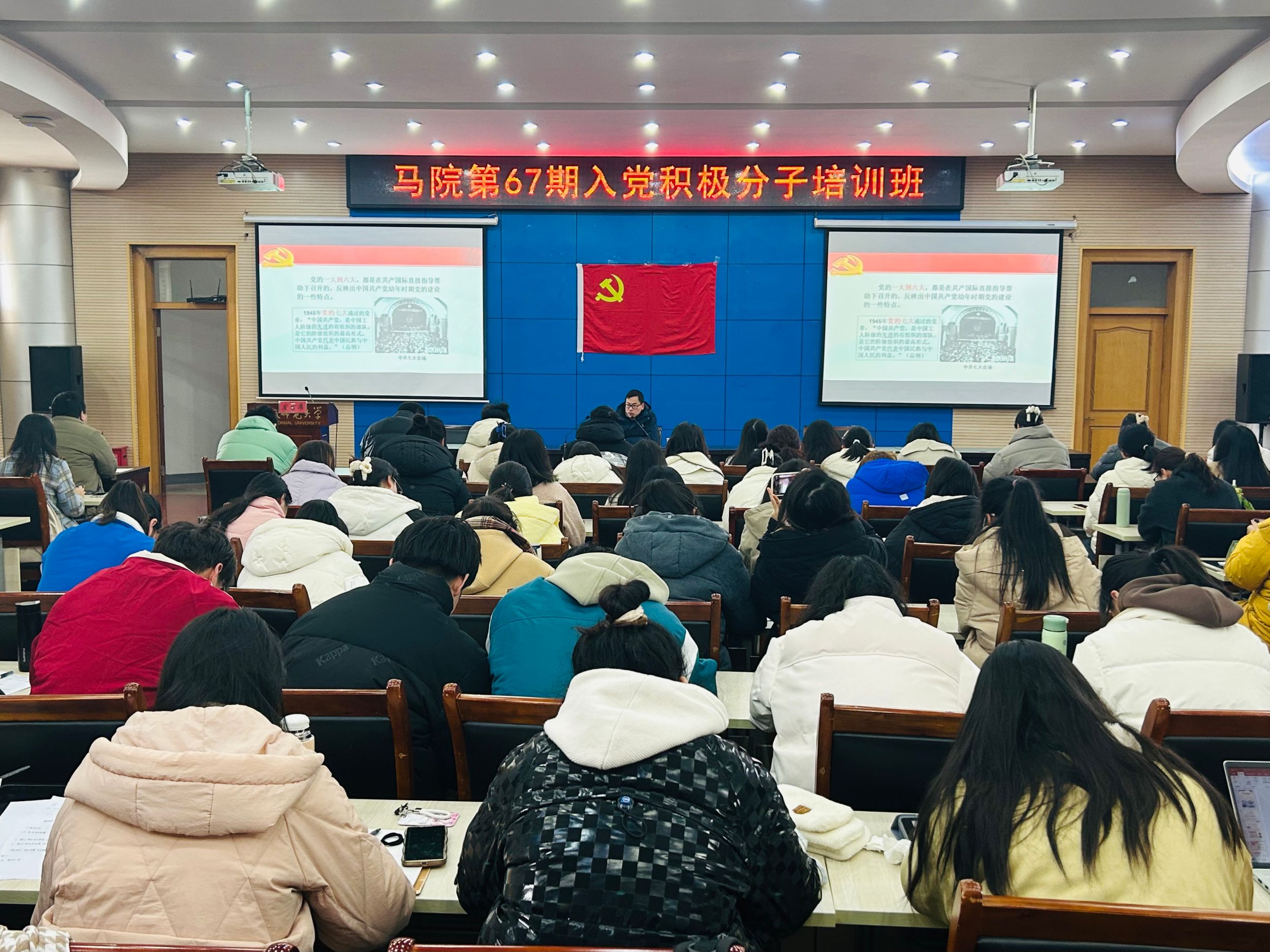 3月2日上午,曹明臣副教授在会议中心第三报告厅为beet365第67期入党积极分子培训班讲授《不忘百年党史、牢记党的性质,践行宗旨意识》专题党课。党课由班主任周楠主持。
