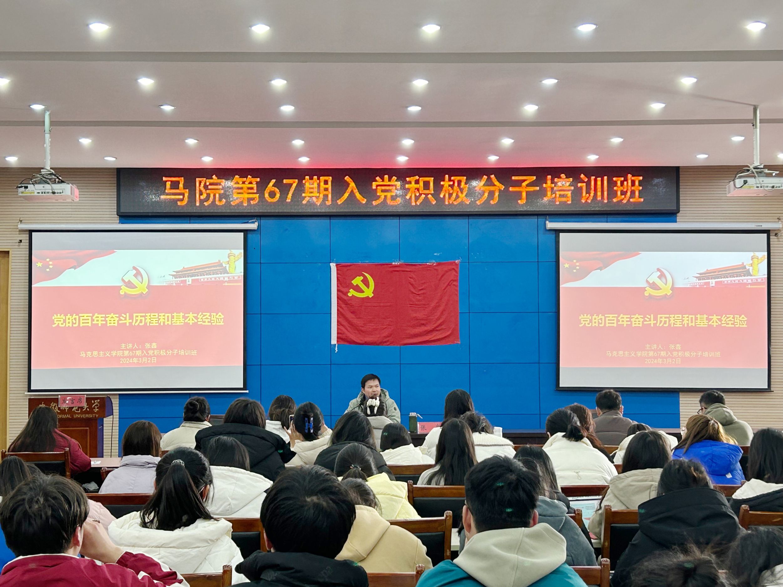 3月2日下午,张鑫副教授在会议中心第三报告厅为beet365第67期入党积极分子培训班讲授“党的百年奋斗历程和基本经验”课程。党课由班主任周楠主持。