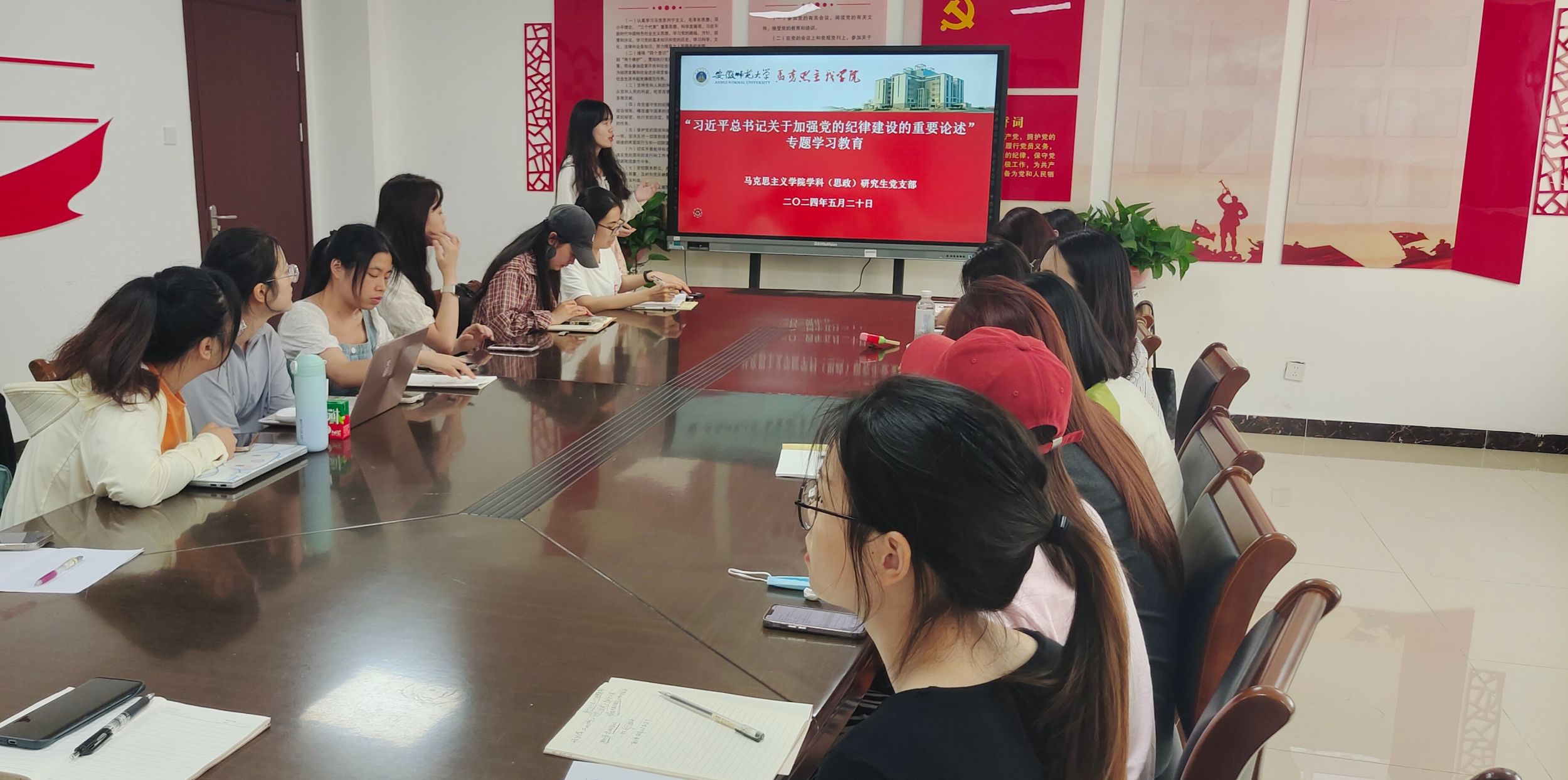 为深入学习贯彻习近平总书记关于加强党的纪律教育的重要论述,推动党纪学习教育入脑入心、走深走实,5月20日上午,学科(思政)研究生党支部在公司二楼215会议室开展了“遵规守纪刻印在心”交流研讨主题党日活动,本次党日活动由支部书记夏盼盼主持,支部全体党员参加。