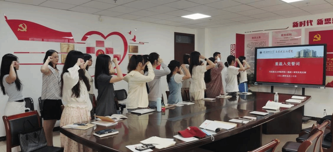 重温誓词,追忆初心。支部组织党员重温入党誓词。何月同学带领支部回顾入党誓词,让党员更加清晰地认识到自己作为一名共产党员的责任和使命,无论在学习、生活还是工作中,积极践行党员的使命担当。