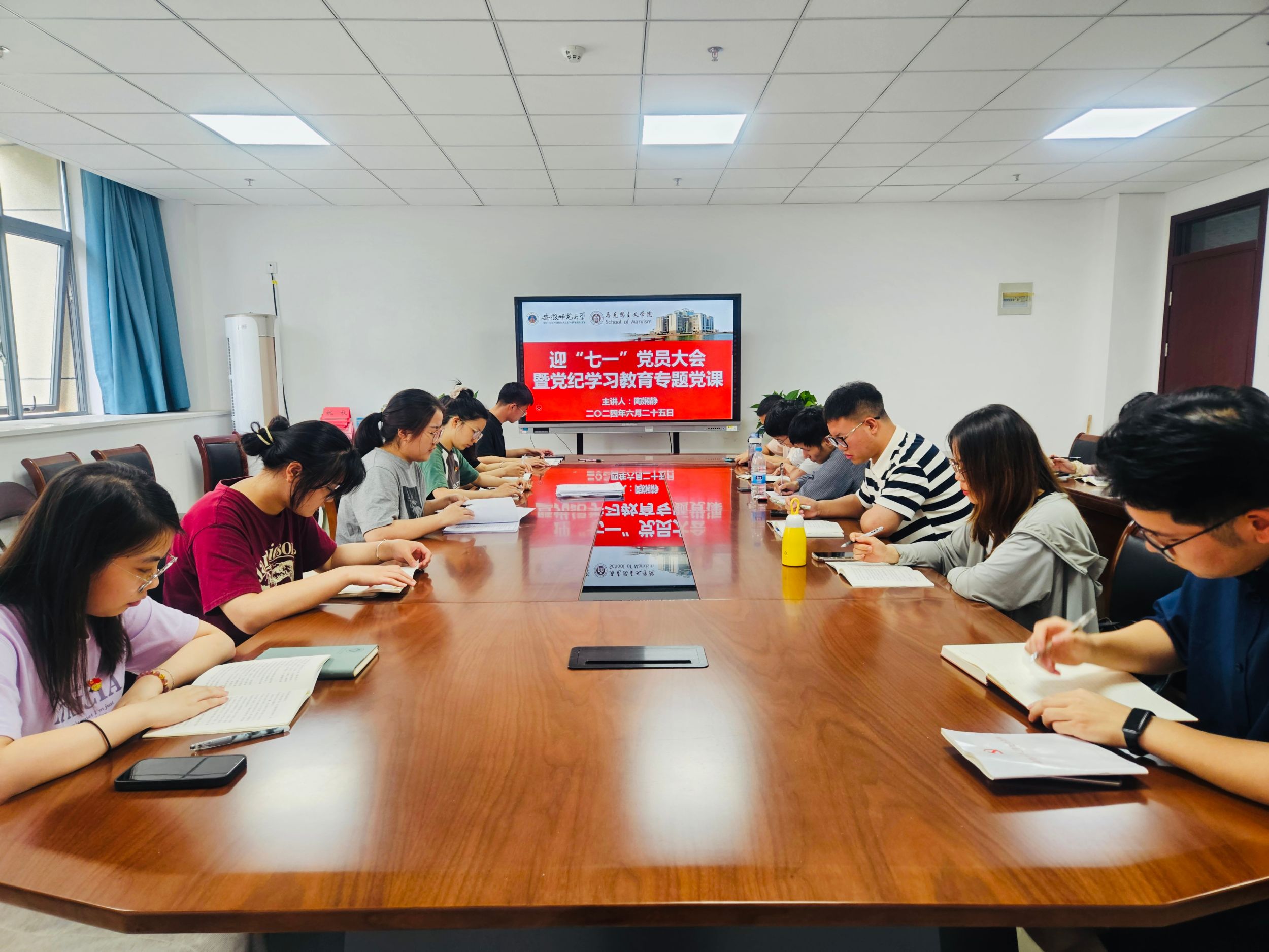 6月25日下午,党史近现代史研究生党支部在公司G211会议室开展迎“七一”党员大会暨党纪学习教育专题党课。此次专题党课由支部书记陶娴静主讲,全体党员同志参加。