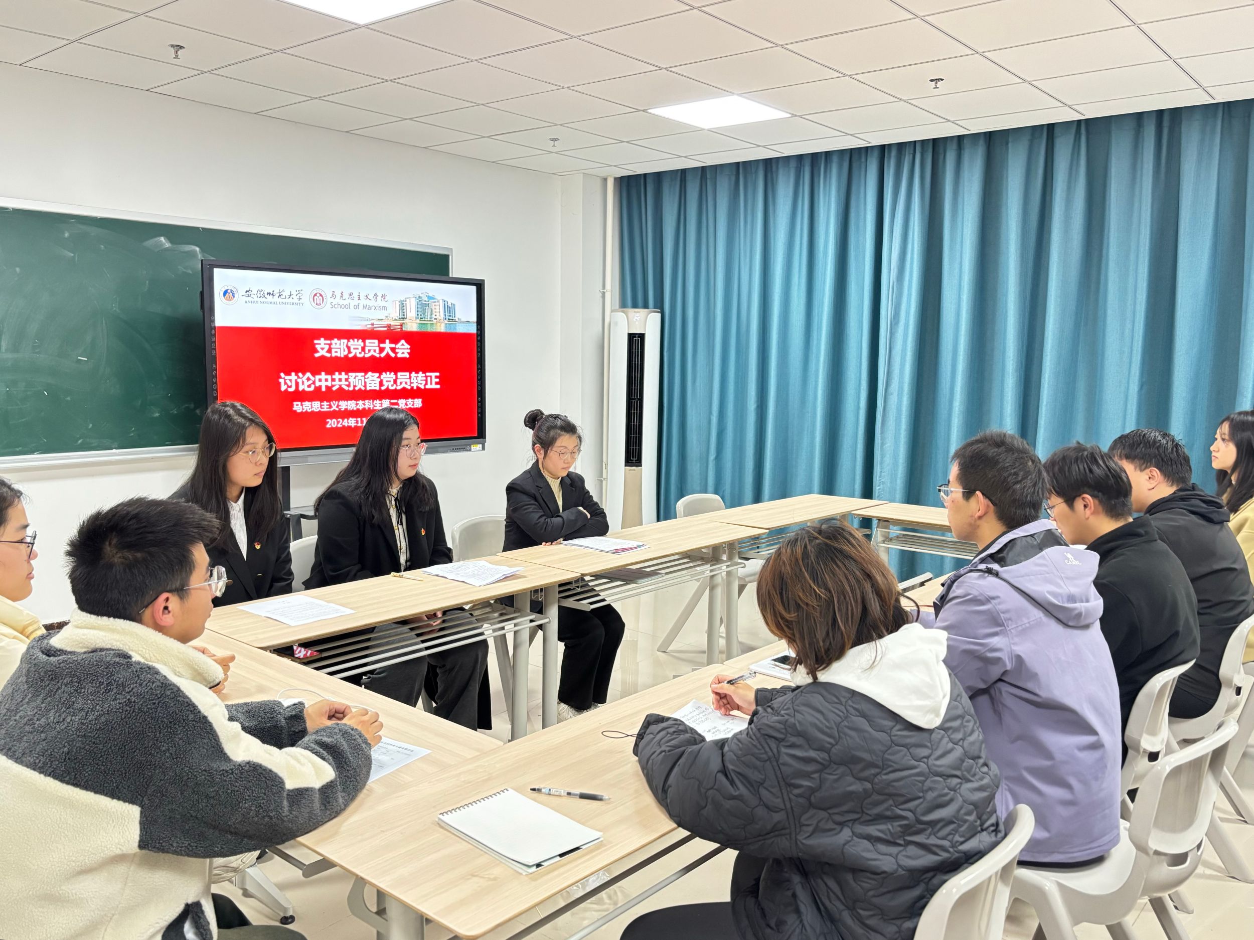11月25日下午,beet365本科生第二党支部在公司G113教室召开支部党员大会,讨论中共预备党员转正相关事宜。党支部书记王梦雨主持会议。