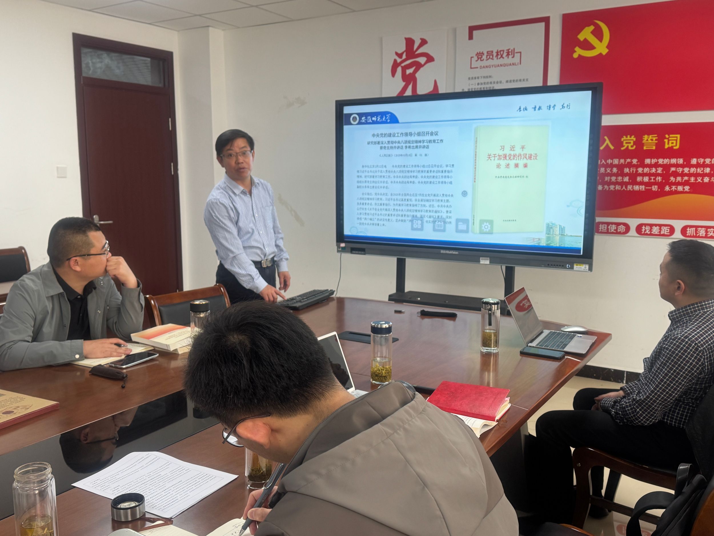 4月16日下午,习近平新时代中国特色社会主义思想概论教研室党支部在文典楼G211会议室开展深入贯彻中央八项规定精神学习教育专题党课。会议由支部书记沈燕培主持,支部全体党员参加会议。