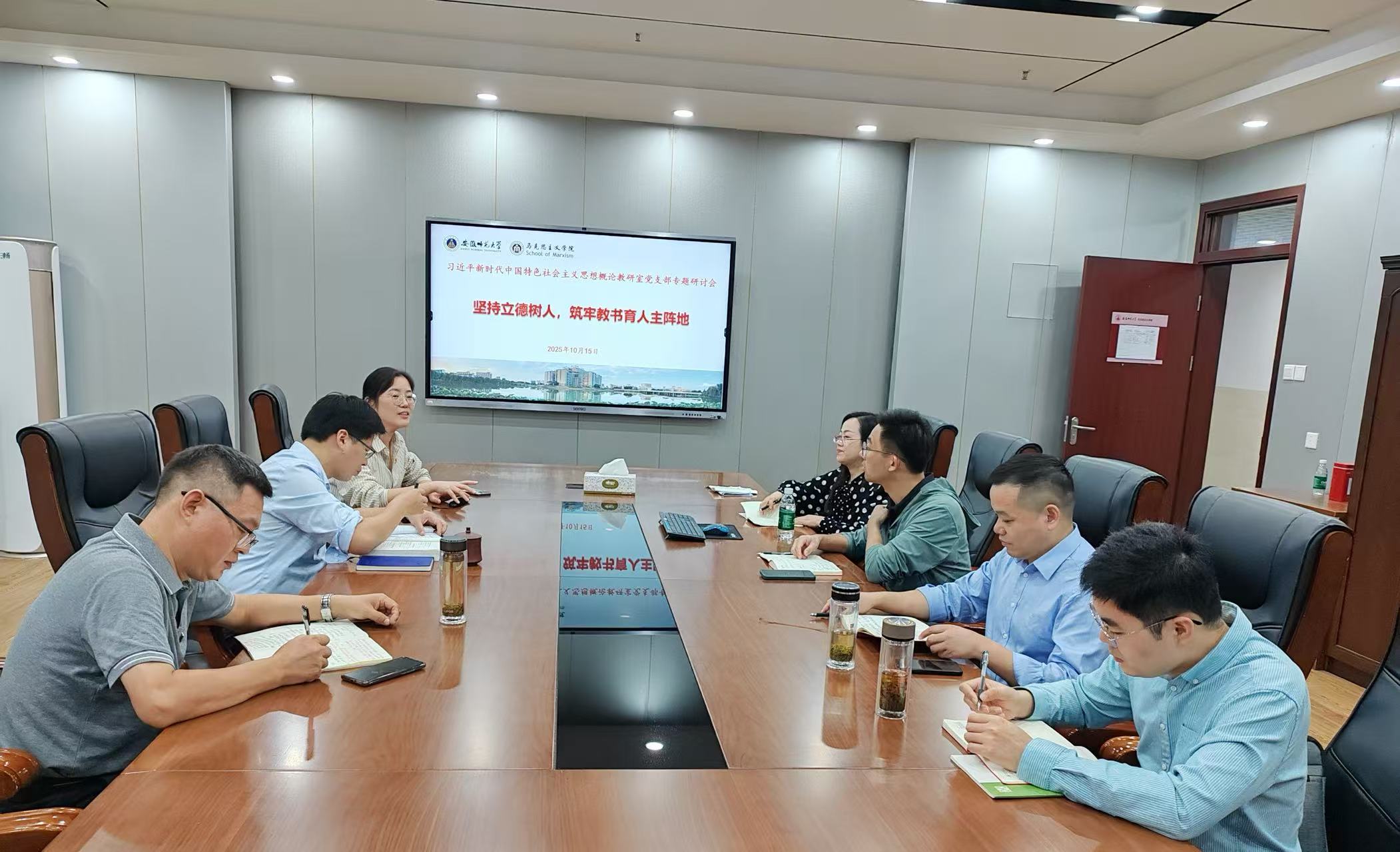 2025年10月15日下午,习近平新时代中国特色社会主义思想概论教研室党支部在G407会议室开展了“坚持立德树人,筑牢教书育人主阵地”专题研讨会。公司党委书记严宏教授及党支部成员参加会议。会议由支部书记沈燕培教授主持。