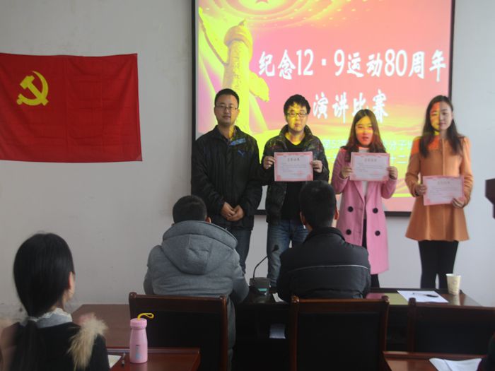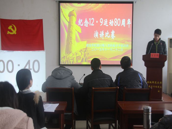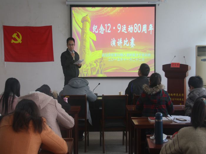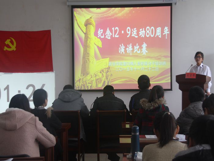 本网讯(文/孙雅文 摄/范冉冉)弘扬抗战精神,共筑复兴梦想。11月22日上午,公司第53期入党积极分子培训班举行“纪念12.9运动80周年”演讲比赛,来自各年级、各专业的14名入党积极分子代表参加此次比赛。分党校班主任周楠及院研究生会副主席王非、新国学社社长郝峰山担任本次比赛的评委。此次比赛由白敬如同学主持。