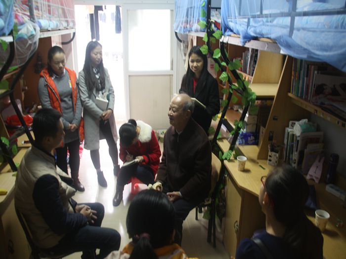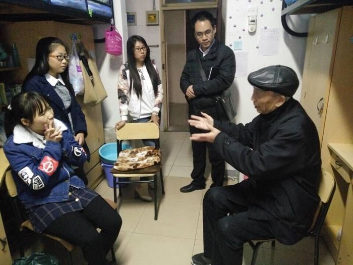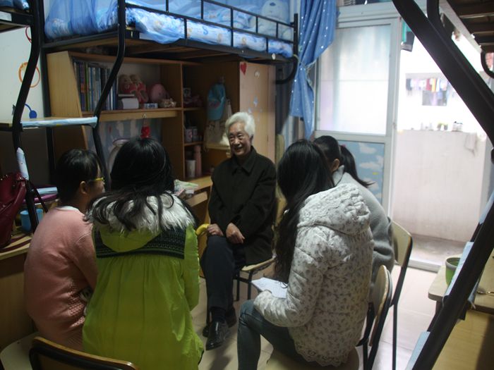 本网讯(文/刘淇梦 摄/苏芳菲)2015年11月21日下午,公司关工委臧宏、黄德渊、杨荣华、黄翠华和李廷宪五位老教授在辅导员周楠、班主任陈琪波的陪同下深入2015级新生宿舍,了解同学们学习生活情况并提供相关指导。