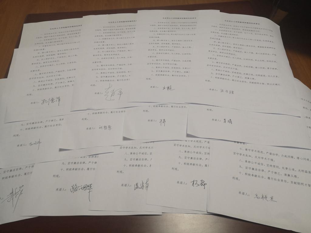 会上,教研室主任路丙辉老师结合自己的工作实际,畅谈了自己的心得体会,他认为,教师作为人类灵魂的工程师,必须率先垂范,以身作则,立德树人。作为思政课教师更要在工作中以身作则,尊重、关心每一位员工,加强思想理论学习,努力提高自己的综合素质,按照“四有”好老师的标准严格要求自己,教育引导员工,担当起员工健康成长指导者和引路人的责任。其他教师也纷纷发言,大家一致认为师德是一种职业道德,它是教师和一切教育工作者在从事教育活动中必须遵守的道德规范和行为准则。作为思政课教师责任重大,使命光荣,每一位教师应忠于党、忠于人民,忠于教育事业,充分发挥党员先锋模范作用,争做有理想信念、有道德情操、有扎实学识、有仁爱之心的“四有”好老师。会上,教师党员现场签署师风师德承诺书,开展了师德师风自查自纠等活动。
