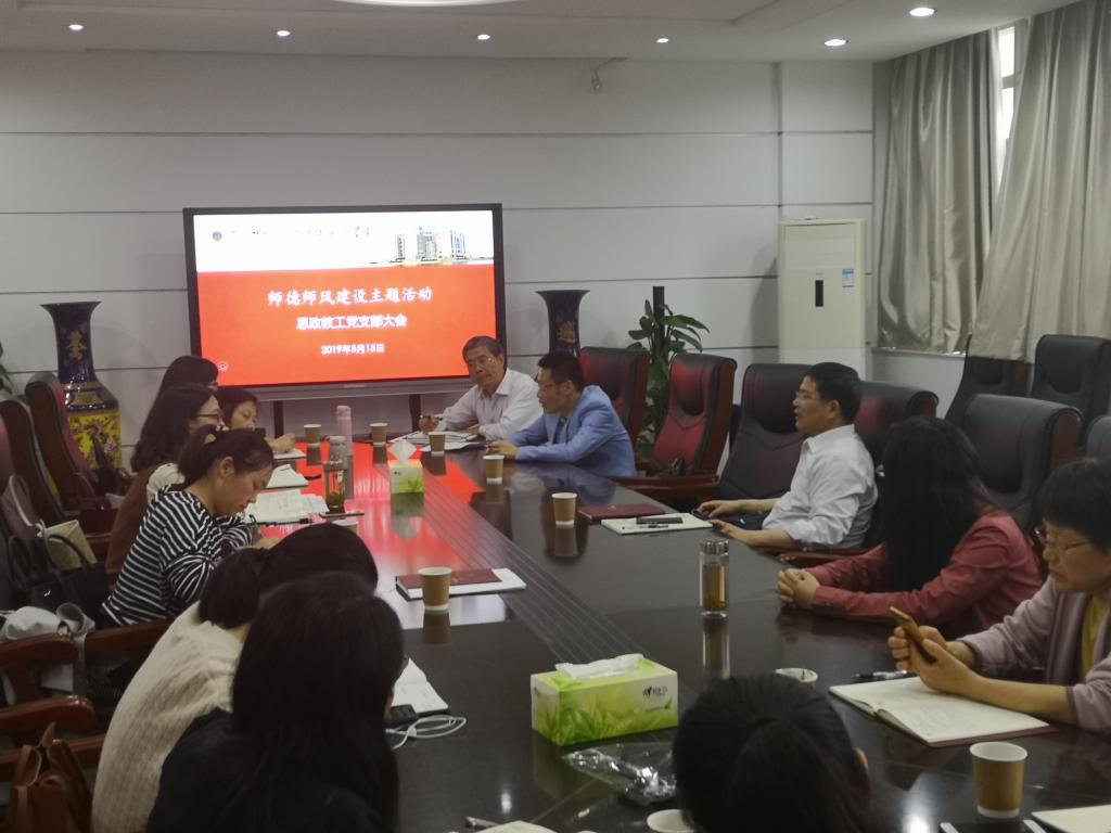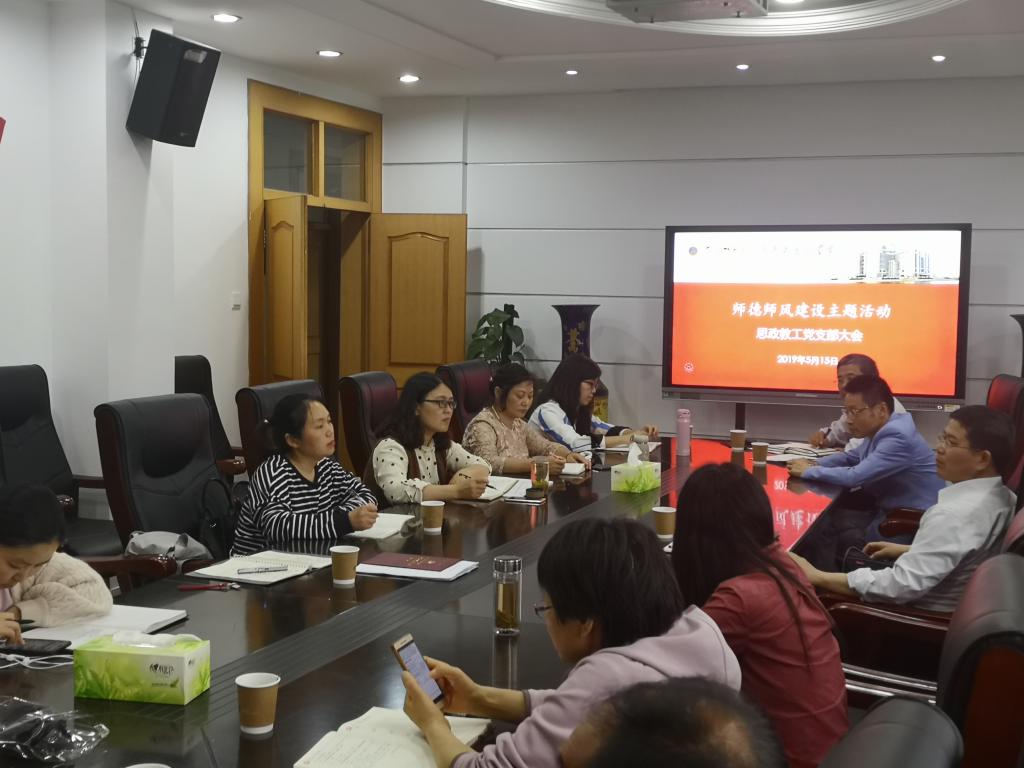 5月15日下午,思政教工党支部在公司楼四楼会议室开展“加强师德师风建设”的主题党日活动。本次活动由支部纪律委员杨希主持,公司党委书记傅绪中应邀出席,支部全体党员及思政教研室教师参加了本次主题党日活动。
