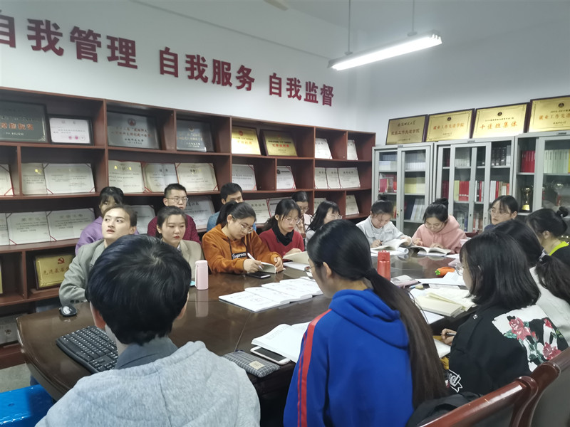 本网讯(文/朱颖 摄/彭静)为深入学习贯彻习近平总书记的“不忘初心,牢记使命”重要论述,10月30日晚,思想政治教育专业本科生党支部于公司一楼员工会办公室开展了“不忘初心,牢记使命”专题党课,全体党员在主讲人夏盼盼的带领下学习了《习近平关于“不忘初心、牢记使命”论述摘编》中第七篇章《勇于自我革命,同一切影响党的先进性、弱化党的纯洁性的问题作坚决斗争》。