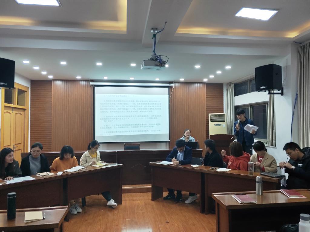 竞答开始前,19级马克思主义理论专业博士生阮平领学了十九届四中全会精神。他从出席人员,通过的文件,我国发展显著优势,发展总体目标和总体要求等方面出发,对我国国家制度和国家治理体系的13个显著优势和为何要推进国家治理体系和治理能力现代化问题进行了详细解读。随后,大家根据前期抽签组队和准备安排开始进行理论知识竞答。竞答以战队PK形式进行,每组五人(包括一名博士党员和四名研究生党员),分为必答和抢答两个环节,竞答题目均来自“青年大学习”和十九届四中全会内容。在必答环节,每队选手在紧张中团结合作;在抢答环节,每队选手聚精会神抢占先锋。为公平起见,本次竞答活动设置四名裁判,负责每组的竞答积分。经过激烈角逐,最终刘先锐同志一组胜出,获得了本次活动的优胜奖。